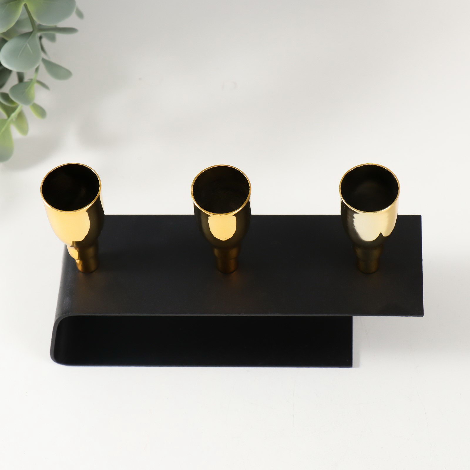 Металлический подсвечник на 3 свечи "Деко", чёрный с золотом, 15.2x4.7x11 см, 4.7x15.2x11 см., Китай