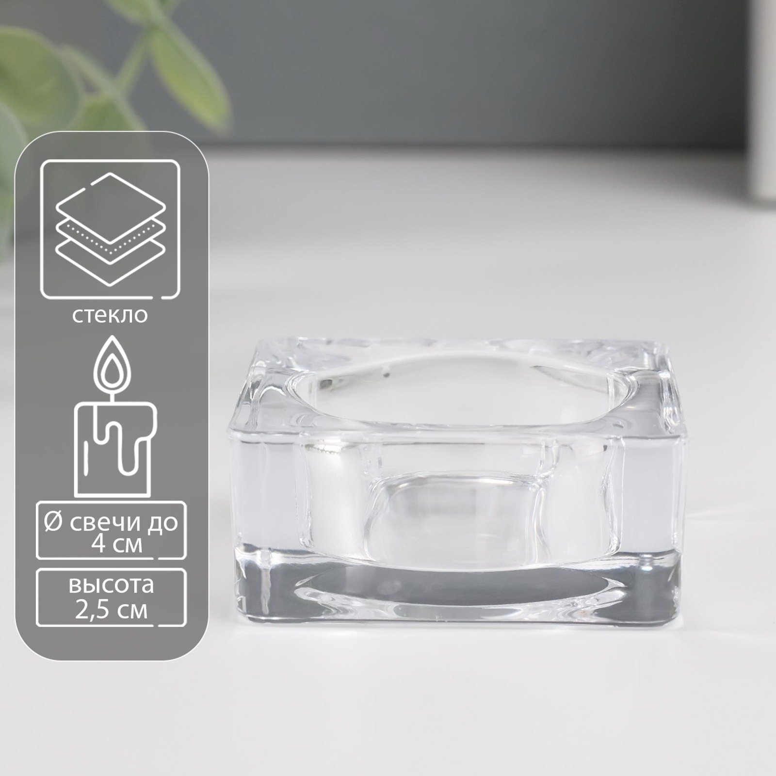 Подсвечник стекло 1 свеча куб мал, Китай