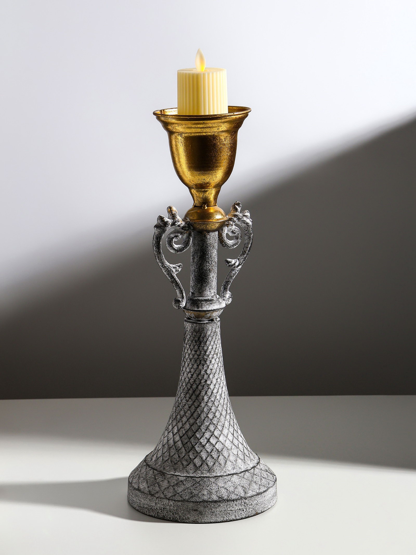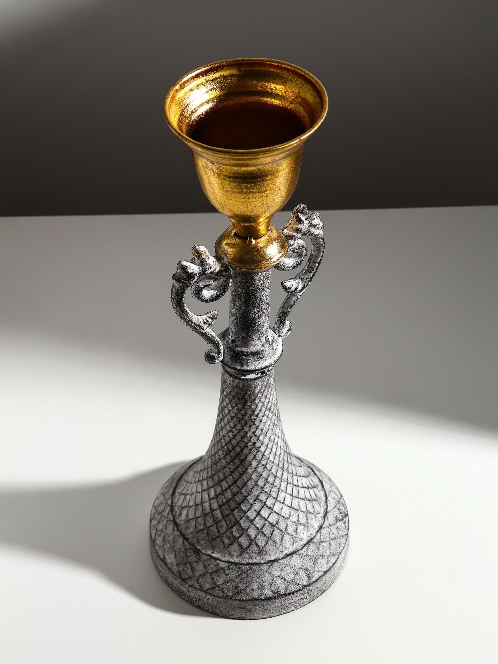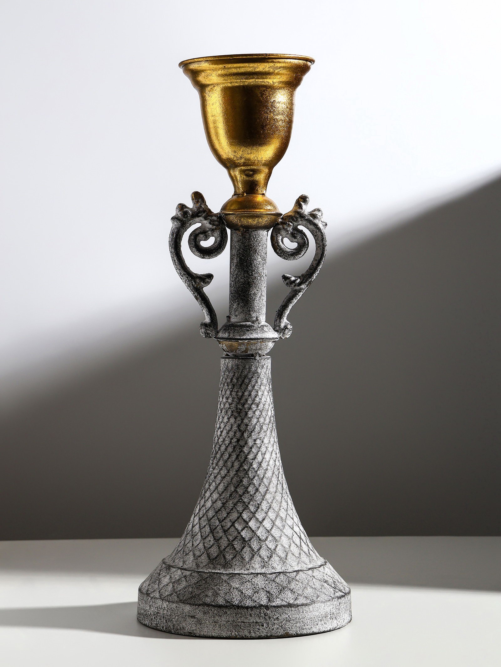 Металлический подсвечник на 1 свечу "Лучиано", серый с золотом, 16x16x42 см, 16x16x40.5 см., Китай