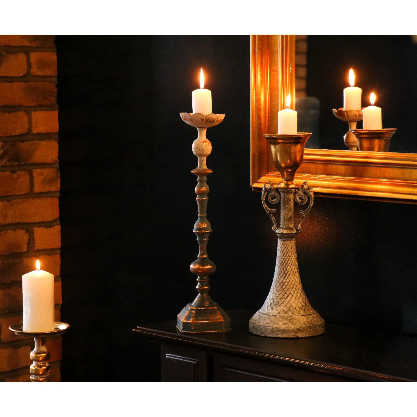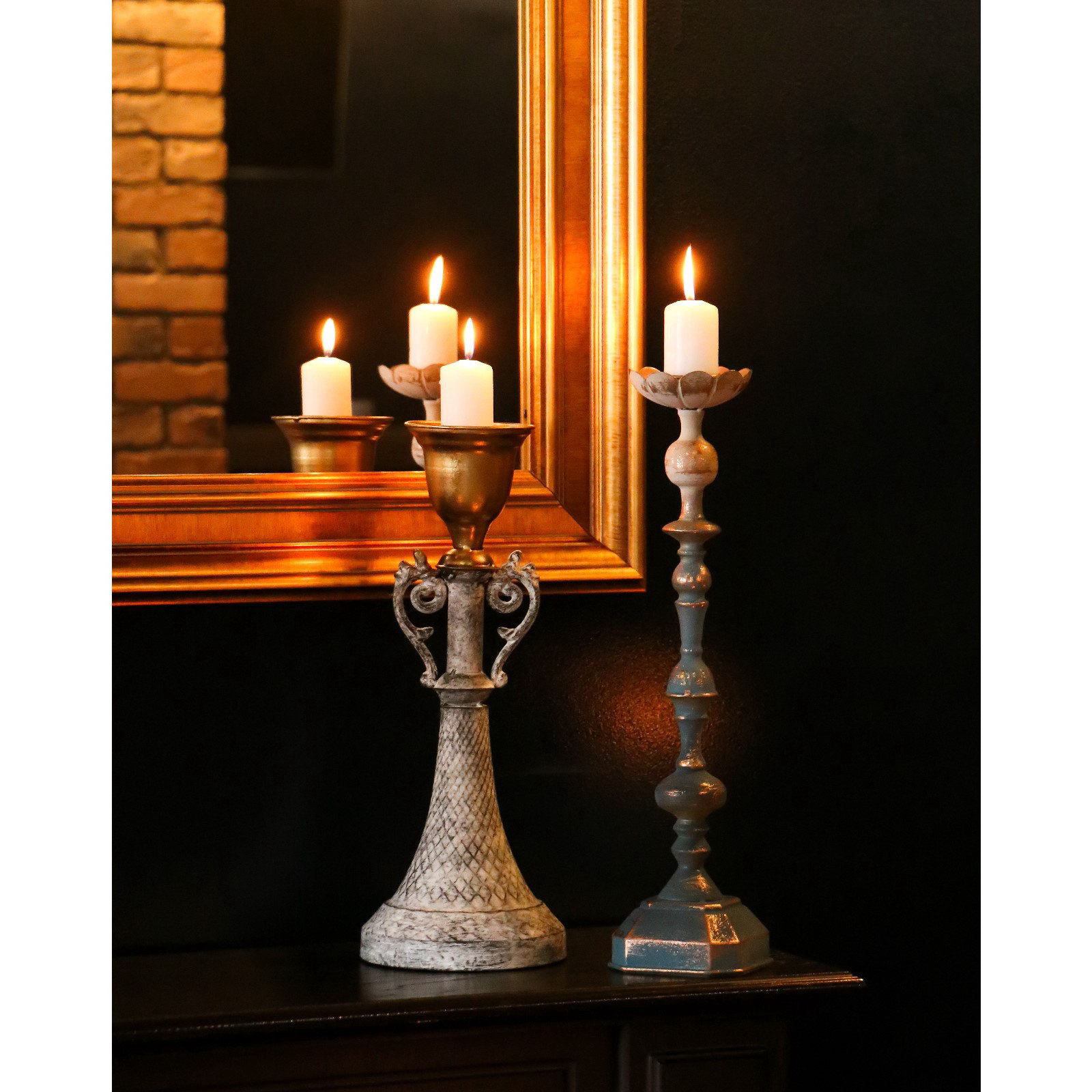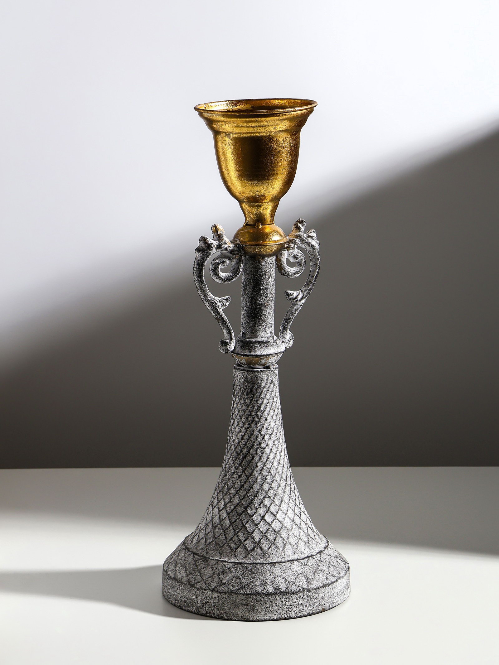Металлический подсвечник на 1 свечу "Лучиано", серый с золотом, 16x16x42 см, 16x16x40.5 см., Китай