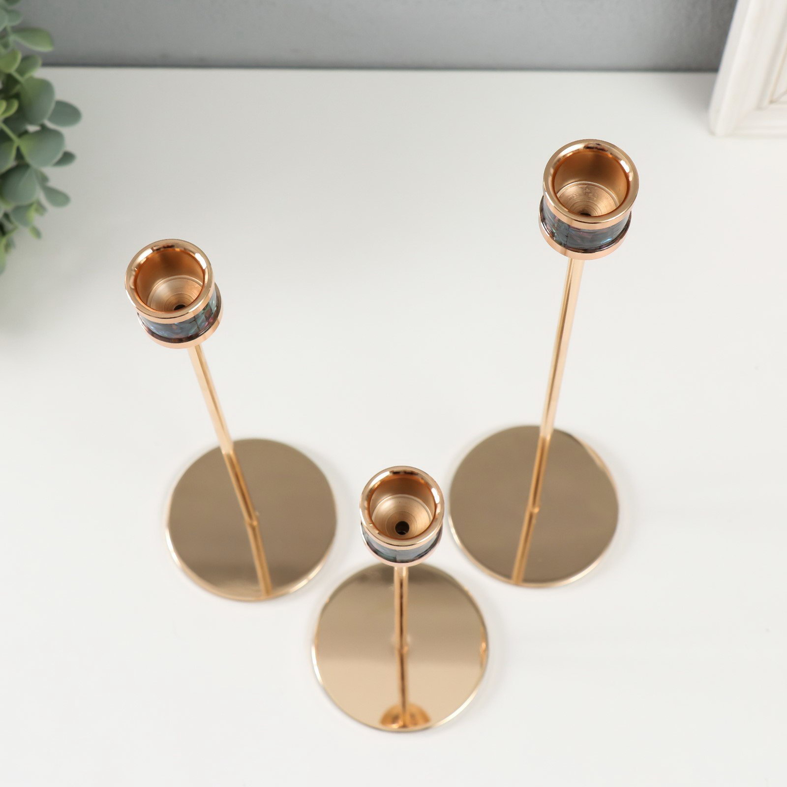 Металлический подсвечник на 1 свечу "Перелив. Кант", d=2.5 см, набор 3 шт., золото, h=22 см, 27 см, 32 см, 8x8x32 см., Китай