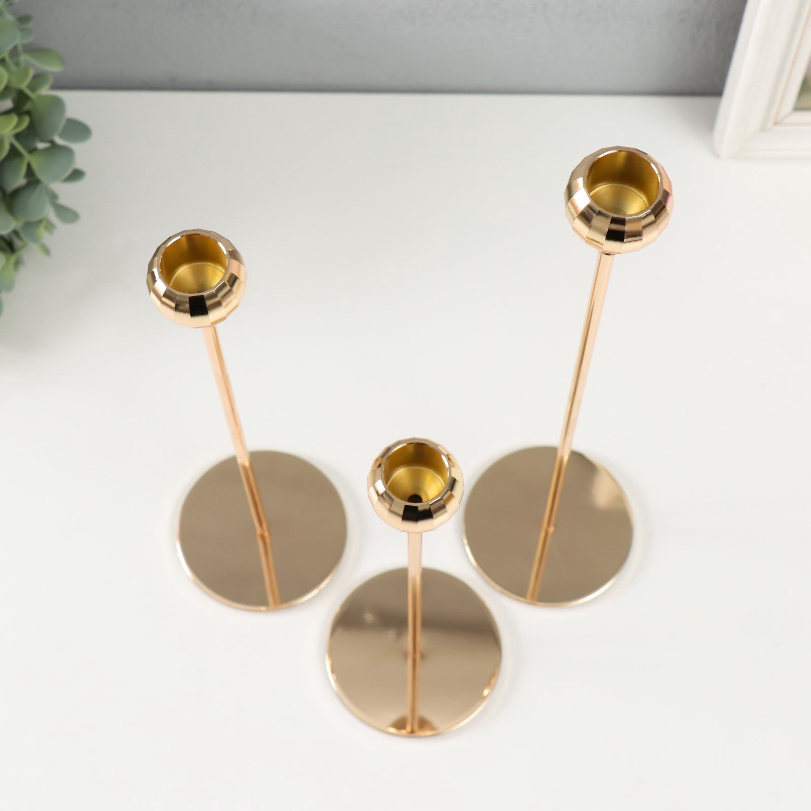 Металлический подсвечник на 1 свечу "Шар с гранями", d=2 см набор 3 шт., золото, h=22 см, 27 см, 32 см, 8x8x32 см., Китай