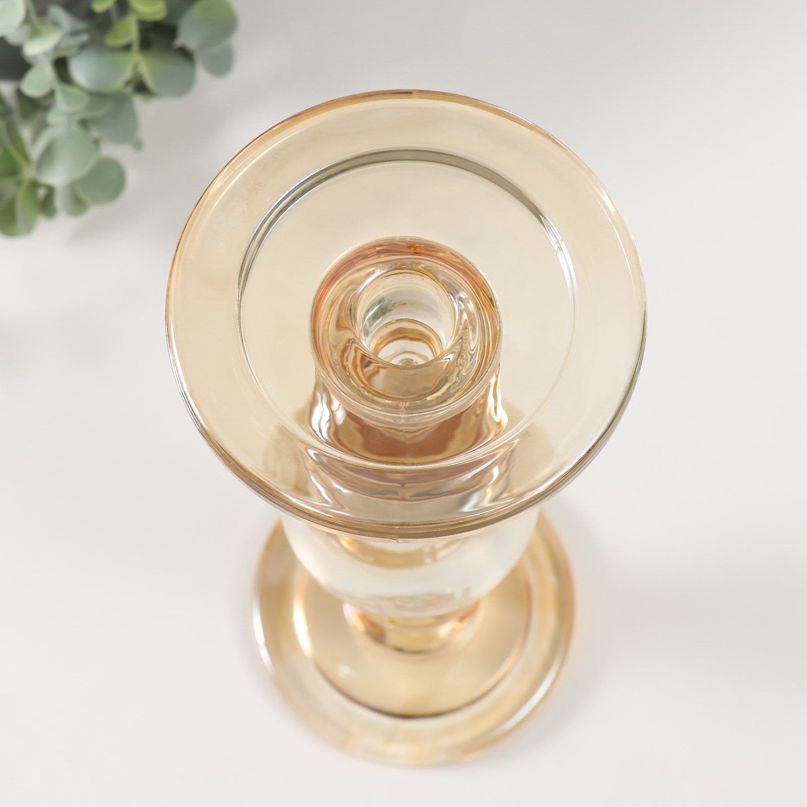Стеклянный подсвечник на 1 свечу двусторонний "Классический с шаром", золотистый, 11x11x29.5 см, 11.3x11.3x30 см., Китай