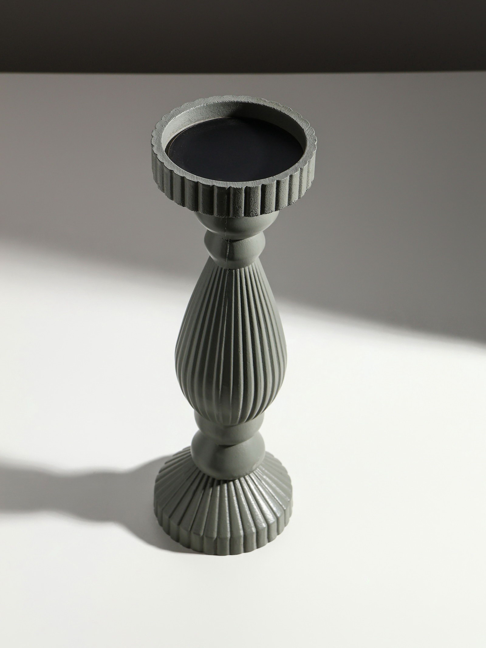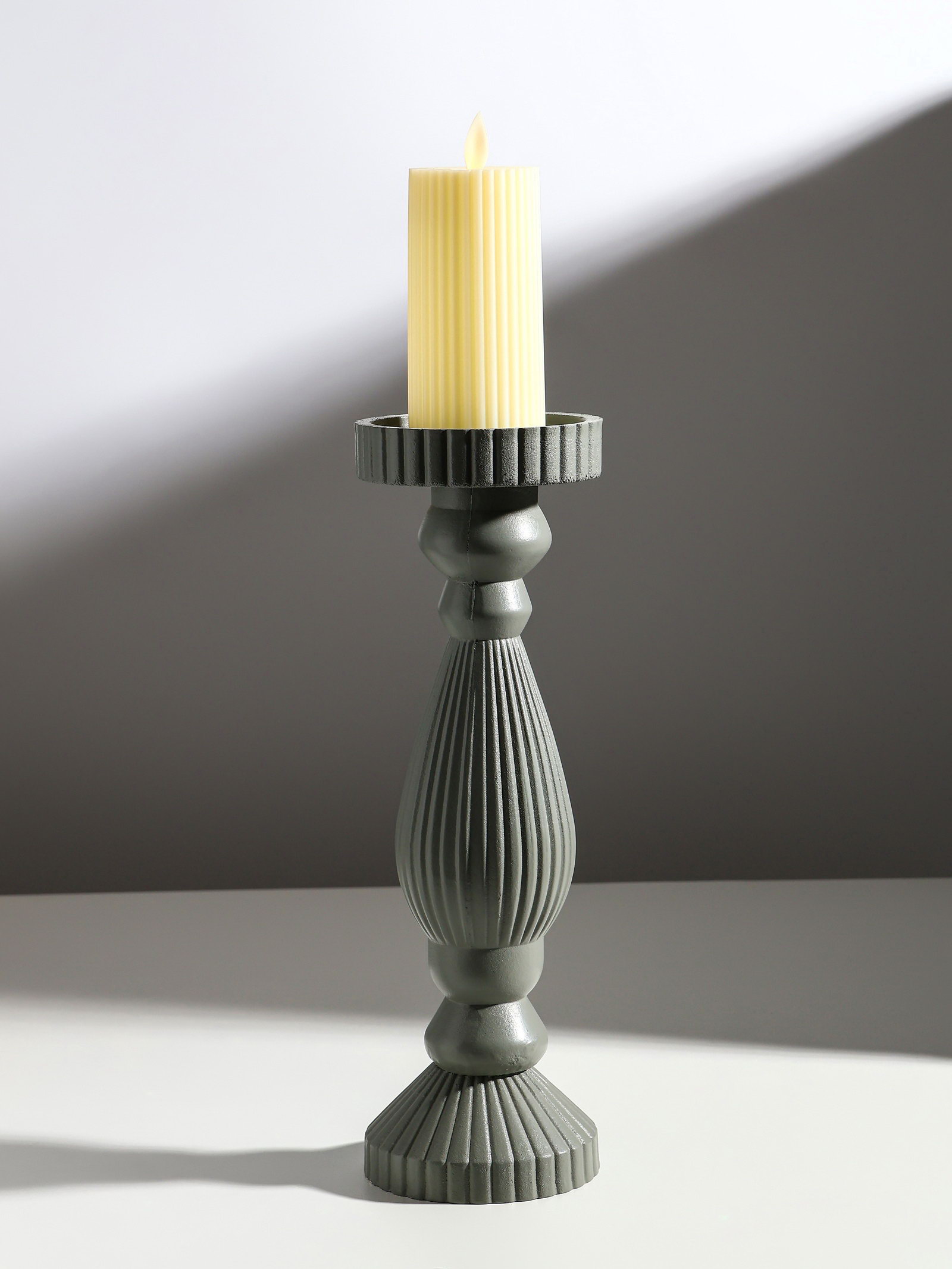 Деревянный подсвечник на 1 свечу "Гофре", серый, 9.7x9.7x30.5 см, 9.7x9.7x30.5 см., Китай