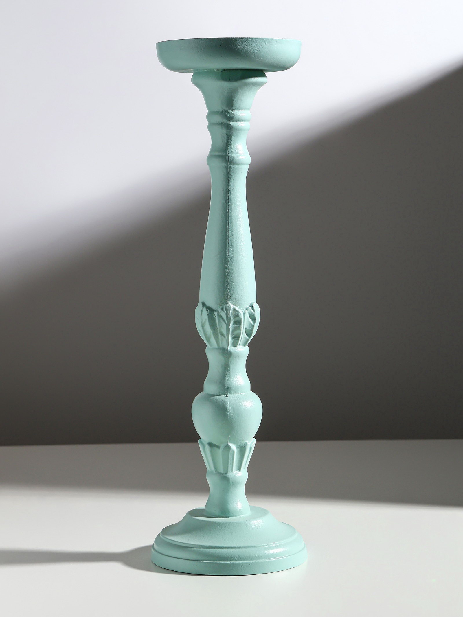 Деревянный подсвечник на 1 свечу "Колонна цветочная", зелёно-серый, 10x10x37 см, 10x10x37 см., Китай
