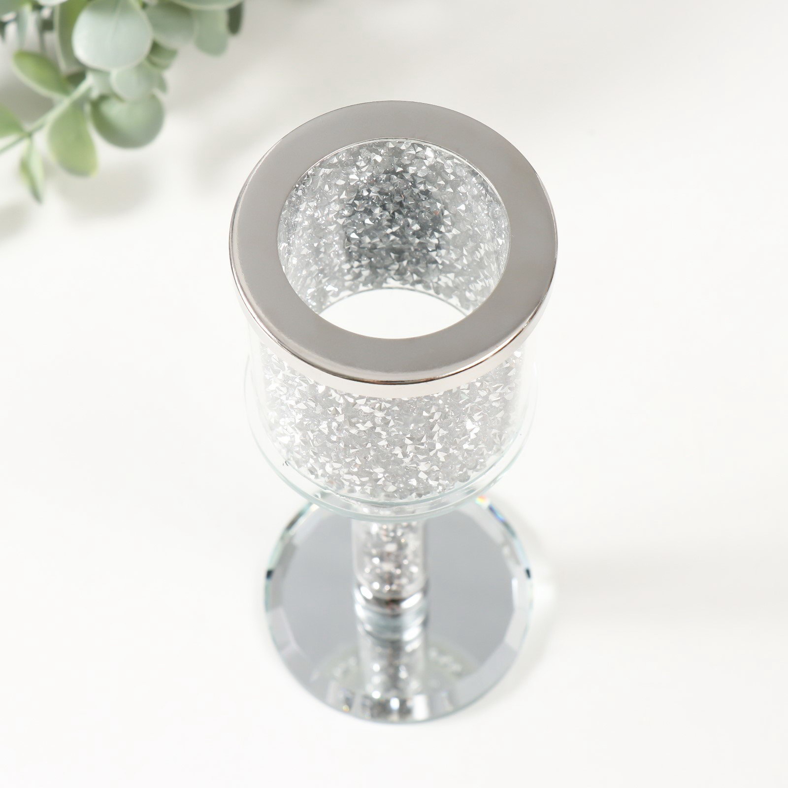 Подсвечник стекло на 1 свечу d=4.5 "Орлеан"серебро 7х7х18 см, 7x7x18 см., Китай