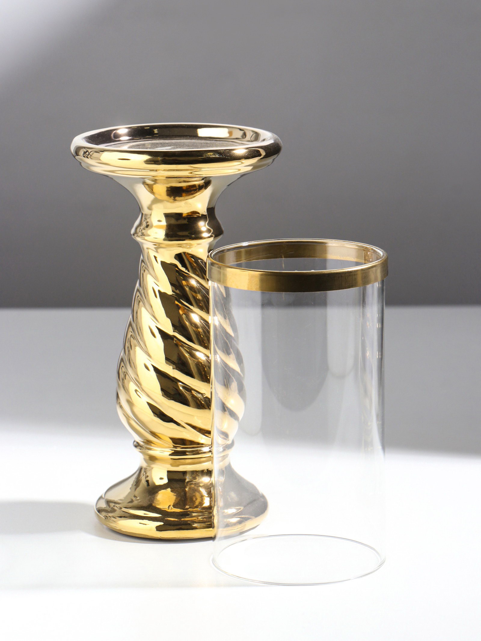 Подсвечник на 1 свечу "Виток", керамика, стекло, d=7.5 см, золото, 9.5x9.5x32 см, 9.5x9.5x32 см., Китай