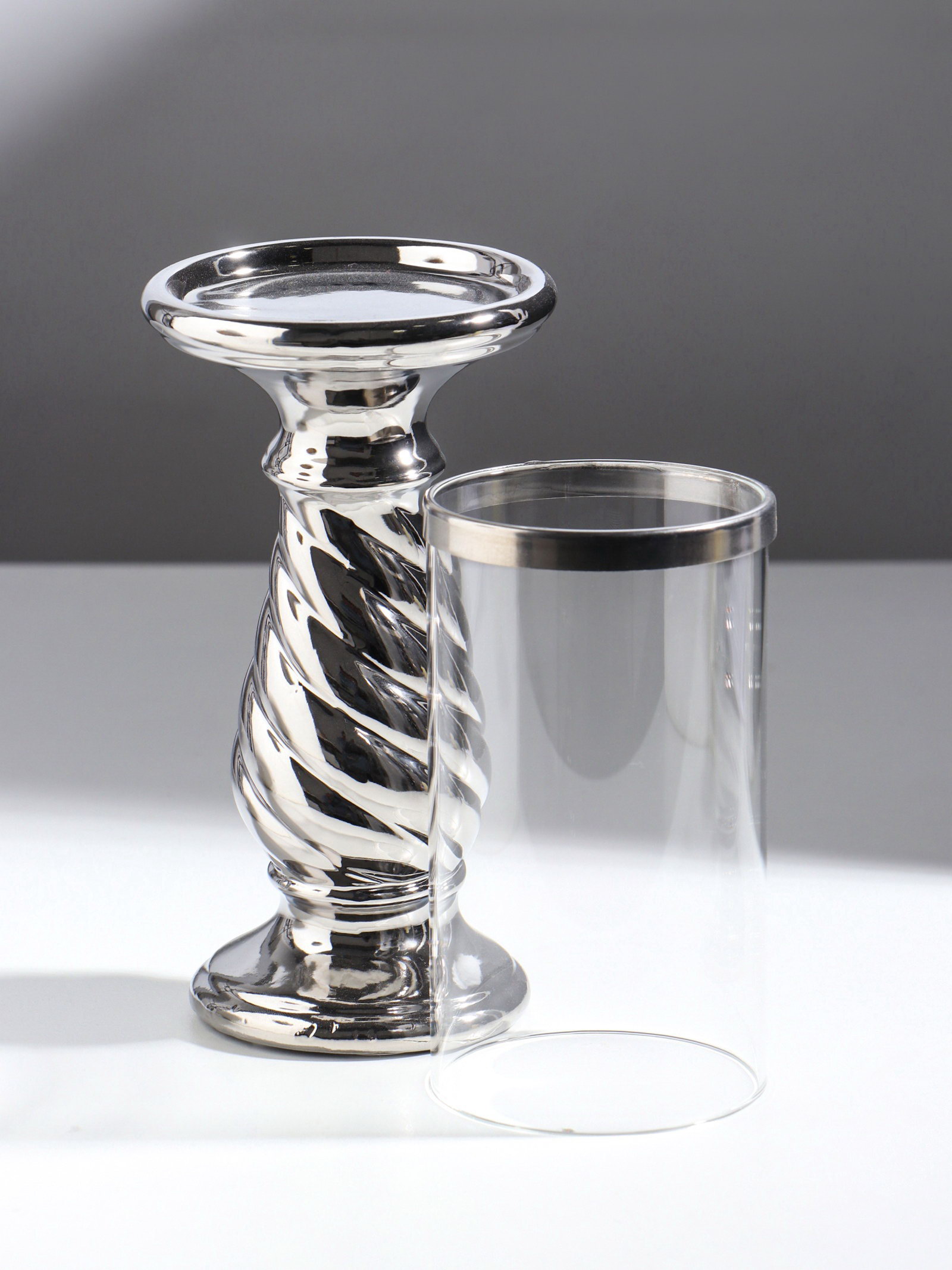 Подсвечник на 1 свечу "Виток", керамика, стекло, d=7.5 см, серебро, 9.5x9.5x32 см, 9.5x9.5x32 см., Китай