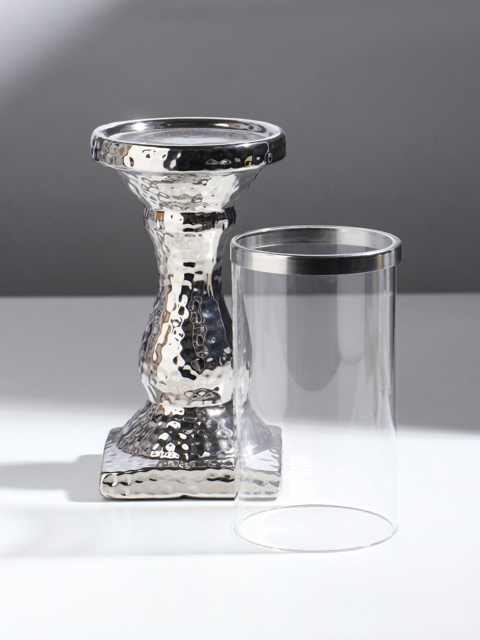Подсвечник на 1 свечу "Монти", керамика, стекло, d=7.5 см, серебро, 9x9x31.5 см, 9x9x31.5 см., Китай