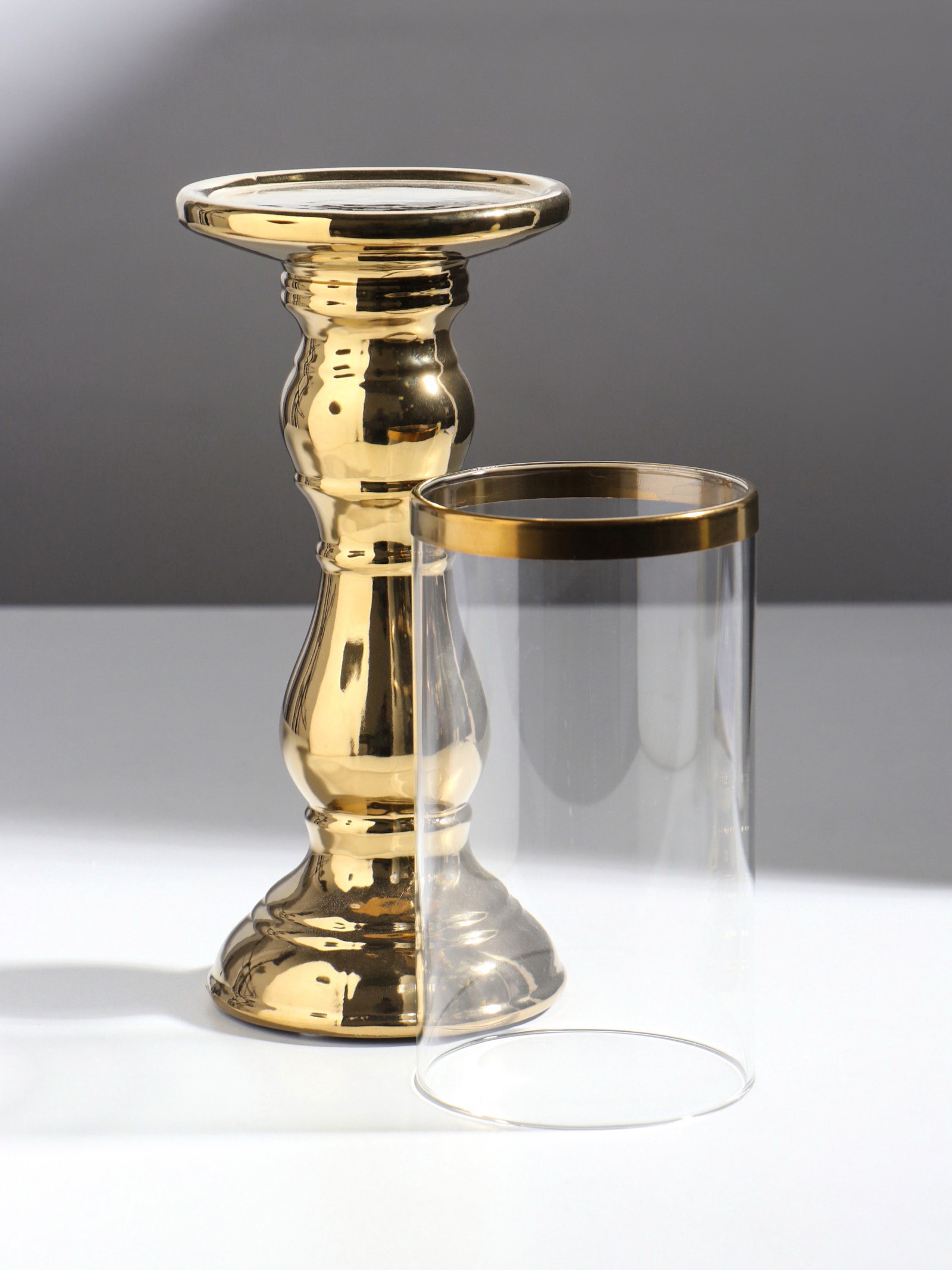Подсвечник на 1 свечу "Лира", керамика, стекло, d=8 см, золото, 9.3x9.3x34 см, 9.3x9.3x34 см., Китай