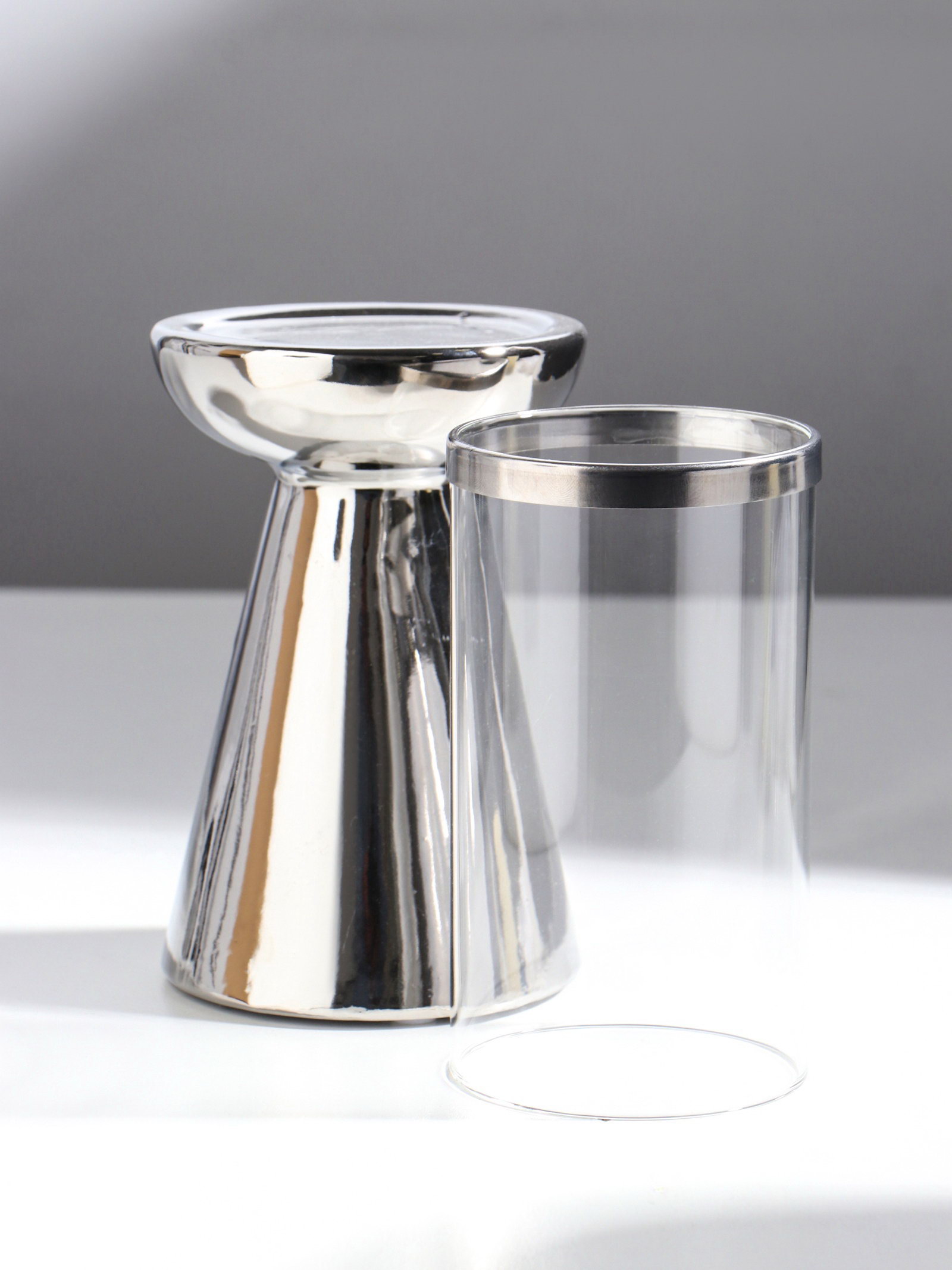 Подсвечник на 1 свечу "Гладь", керамика, стекло, d=8 см, серебро, 10x10x29.5 см, 10x10x29.5 см., Китай