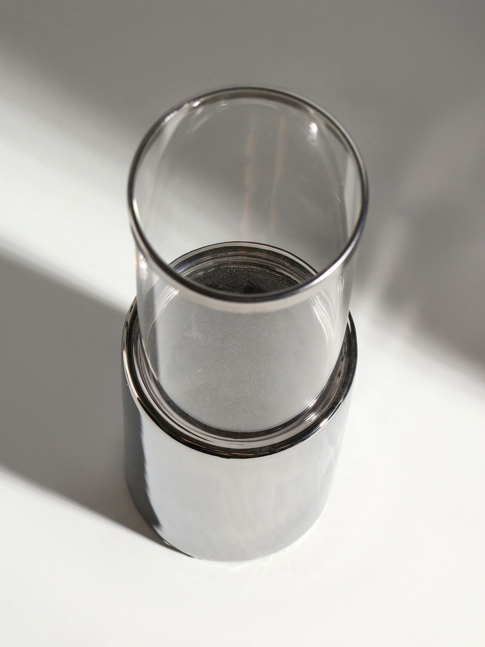 Подсвечник на 1 свечу "Хром", керамика, стекло, d=7.5 см, серебро, 9.2x9.2x29.5 см, 9.2x9.2x29.5 см., Китай