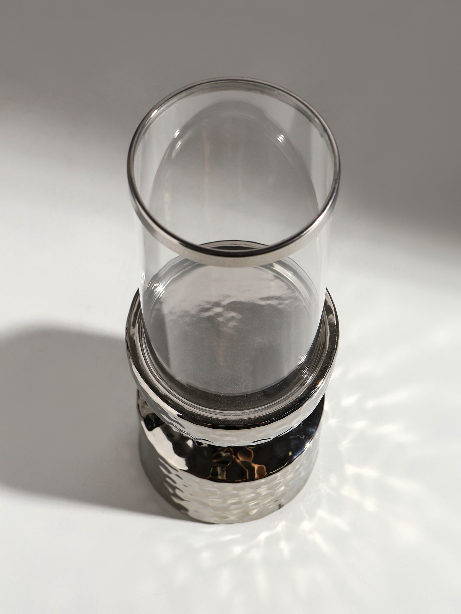 Подсвечник на 1 свечу "Омут", керамика, стекло, d=8 см, серебро, 9.5x9.5x26 см, 9.5x9.5x26 см., Китай