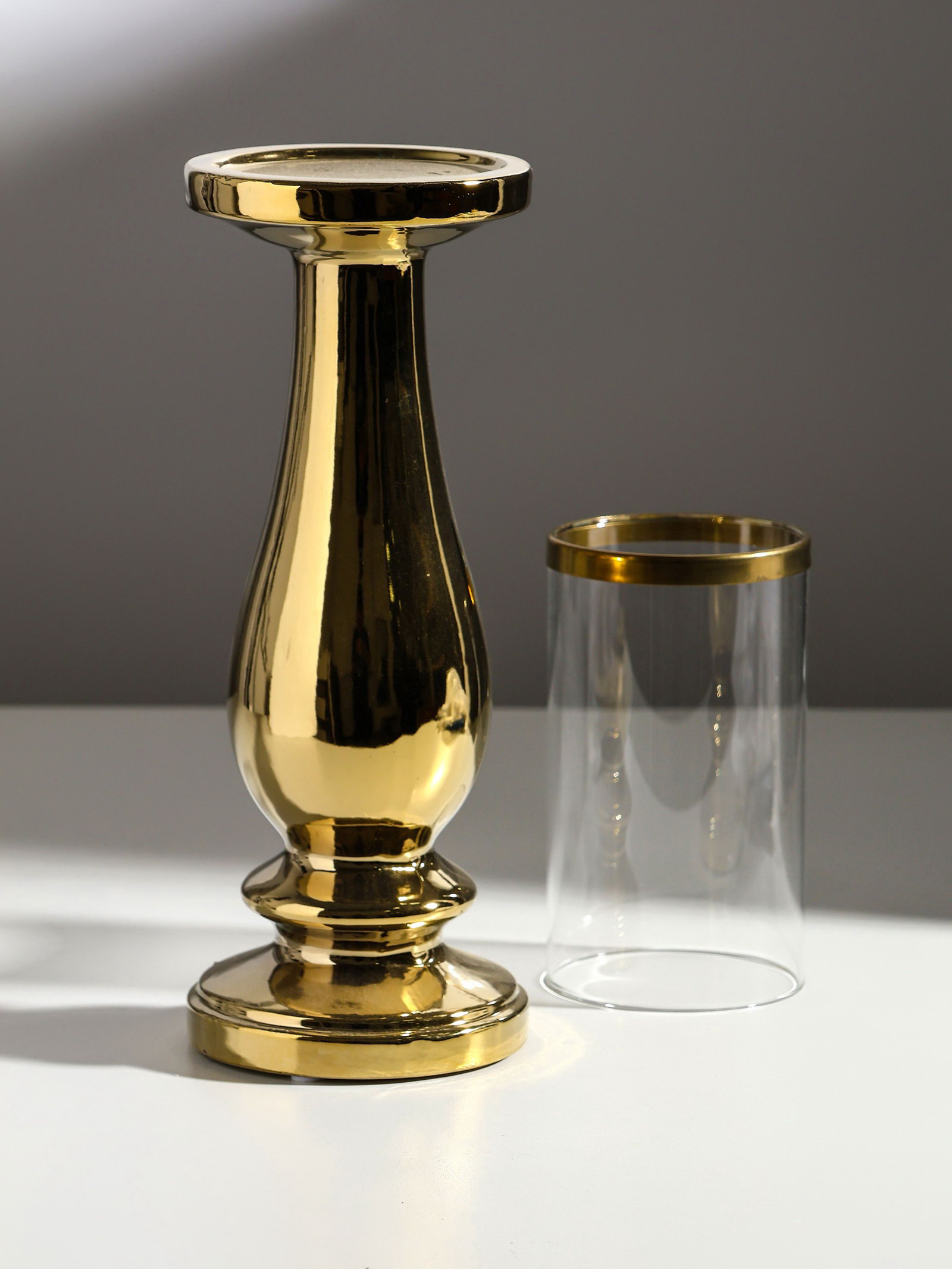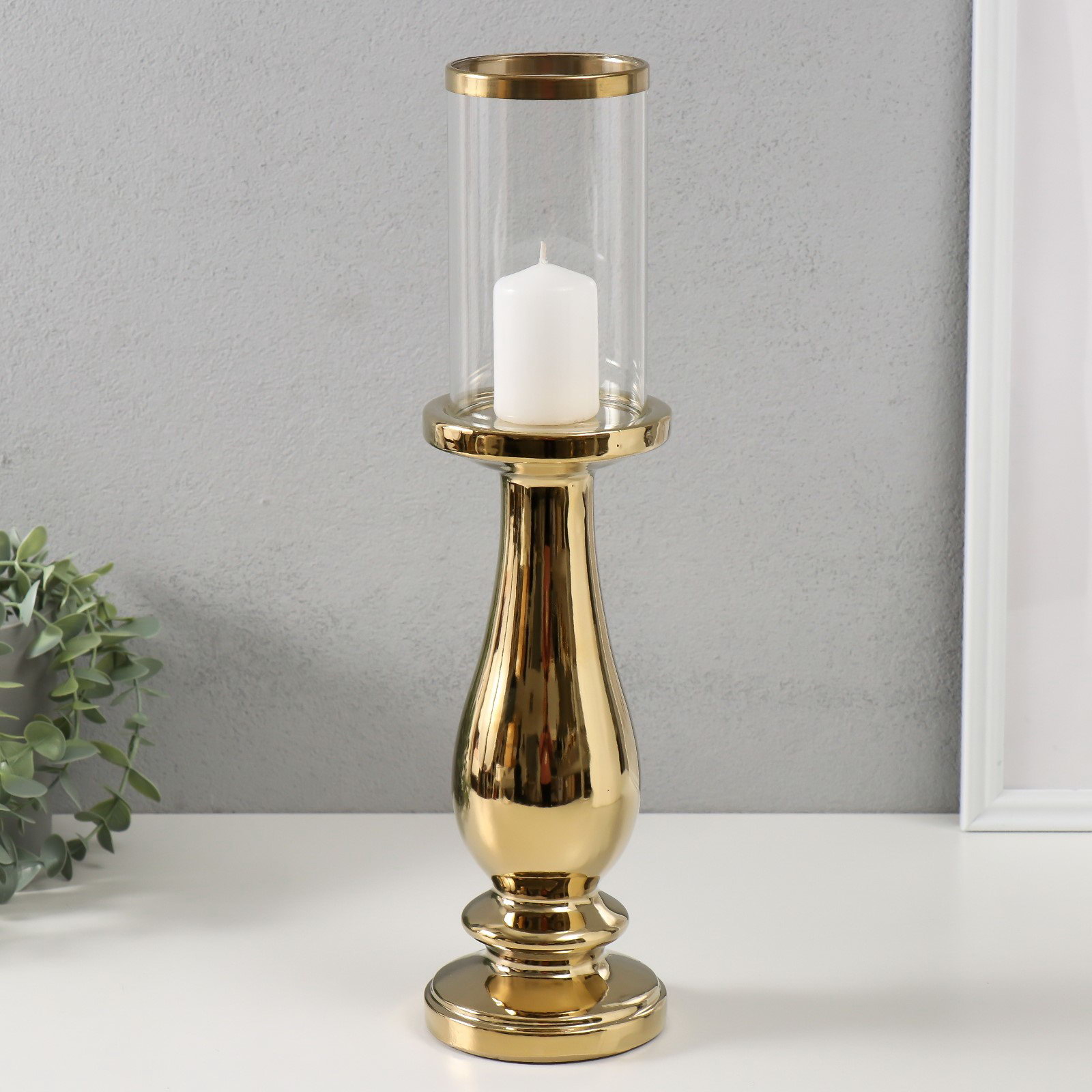 Подсвечник на 1 свечу "Аванти", керамика, стекло, d=8 см, золото, 10x10x40.5 см, 10x10x40.5 см., Китай