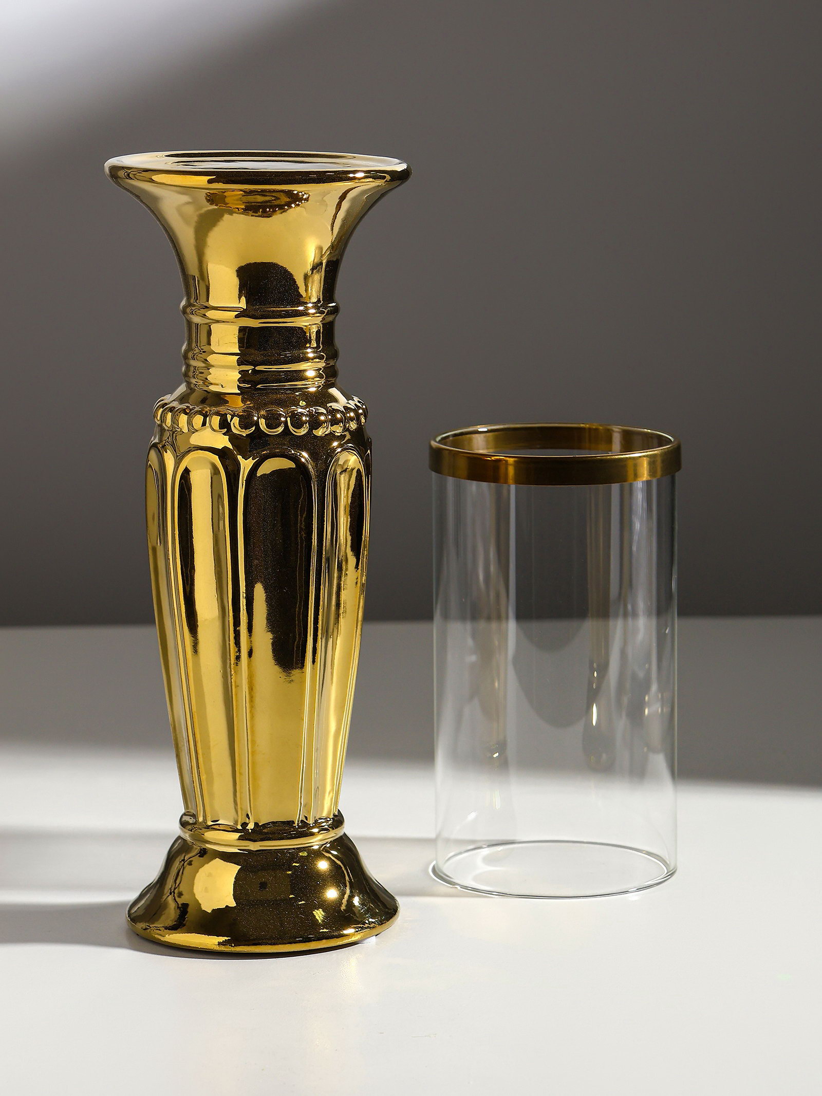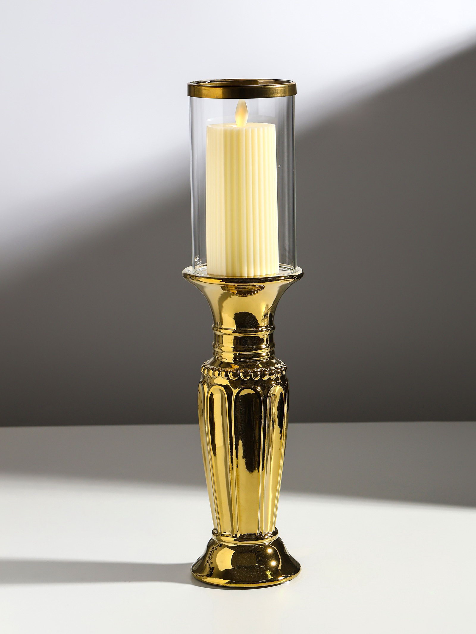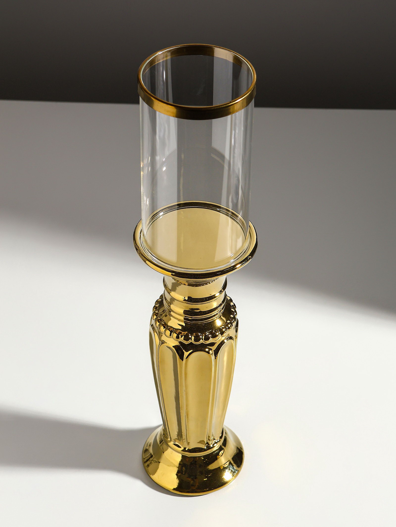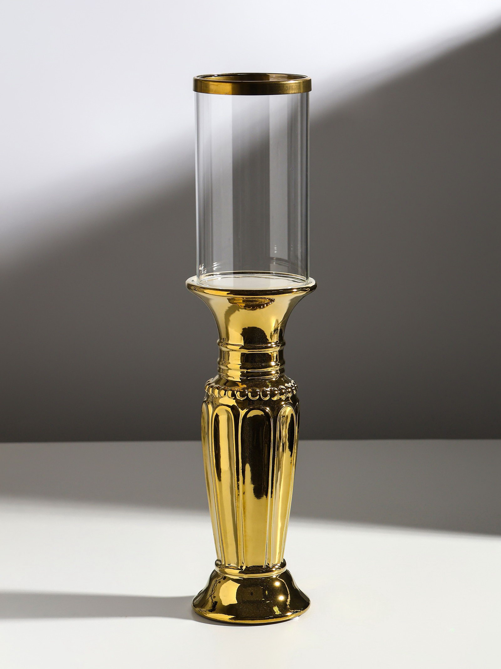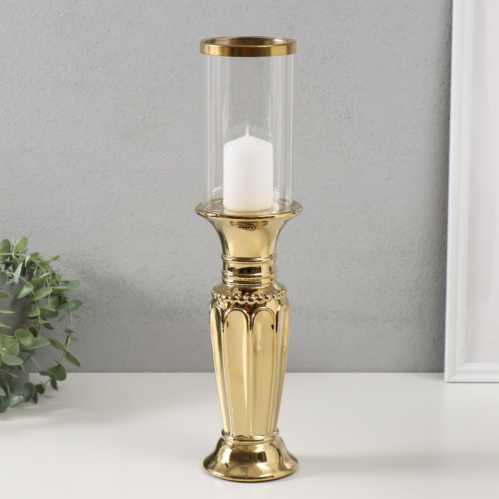 Подсвечник на 1 свечу "Арте", керамика, стекло, d=7.5 см, золото, 9x9x37.5 см, 9x9x37.5 см., Китай