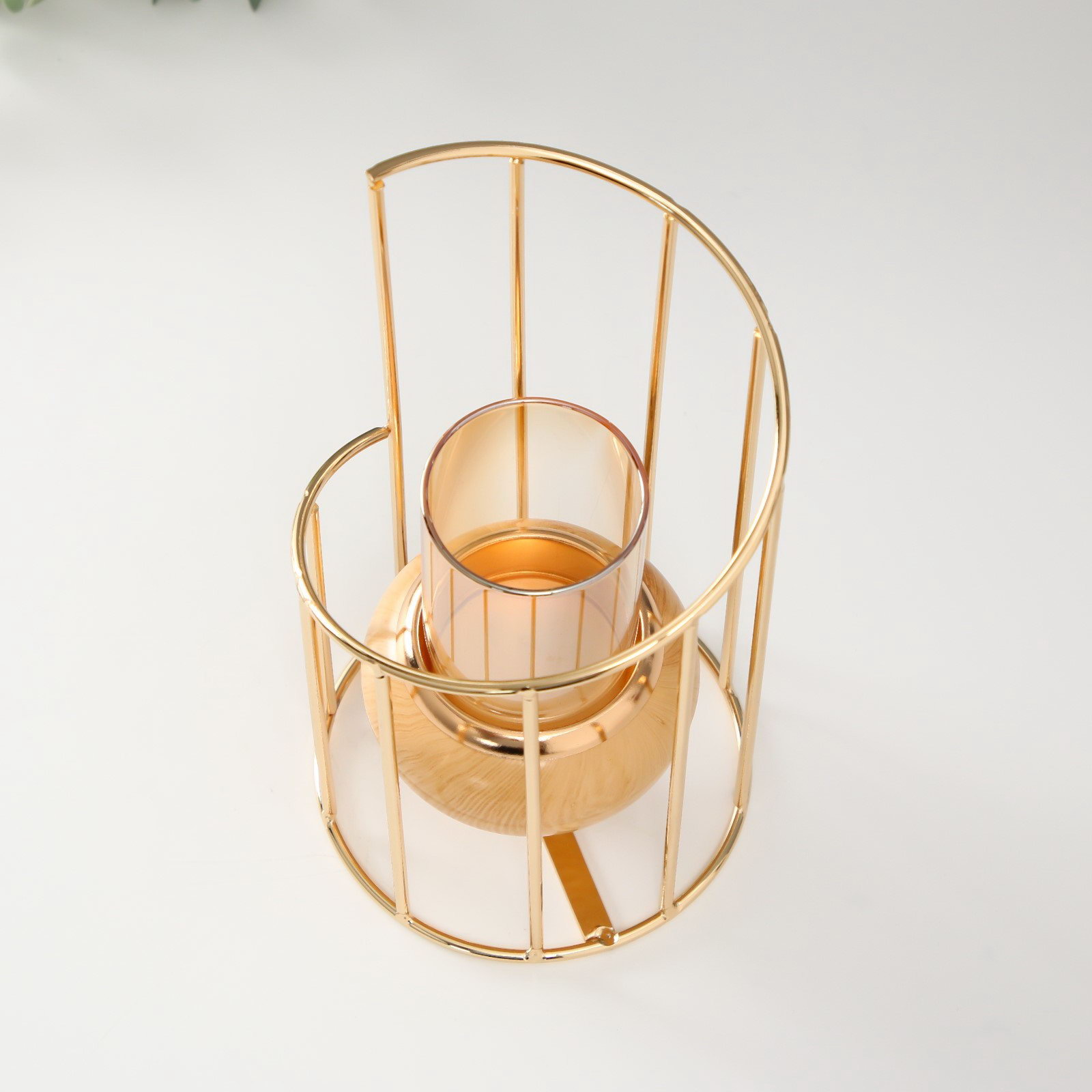 Подсвечник на 1 свечу "Лестница. Эко", металл, стекло, d=5 см, золото, 10x10x20 см, 10x10x20 см., Китай