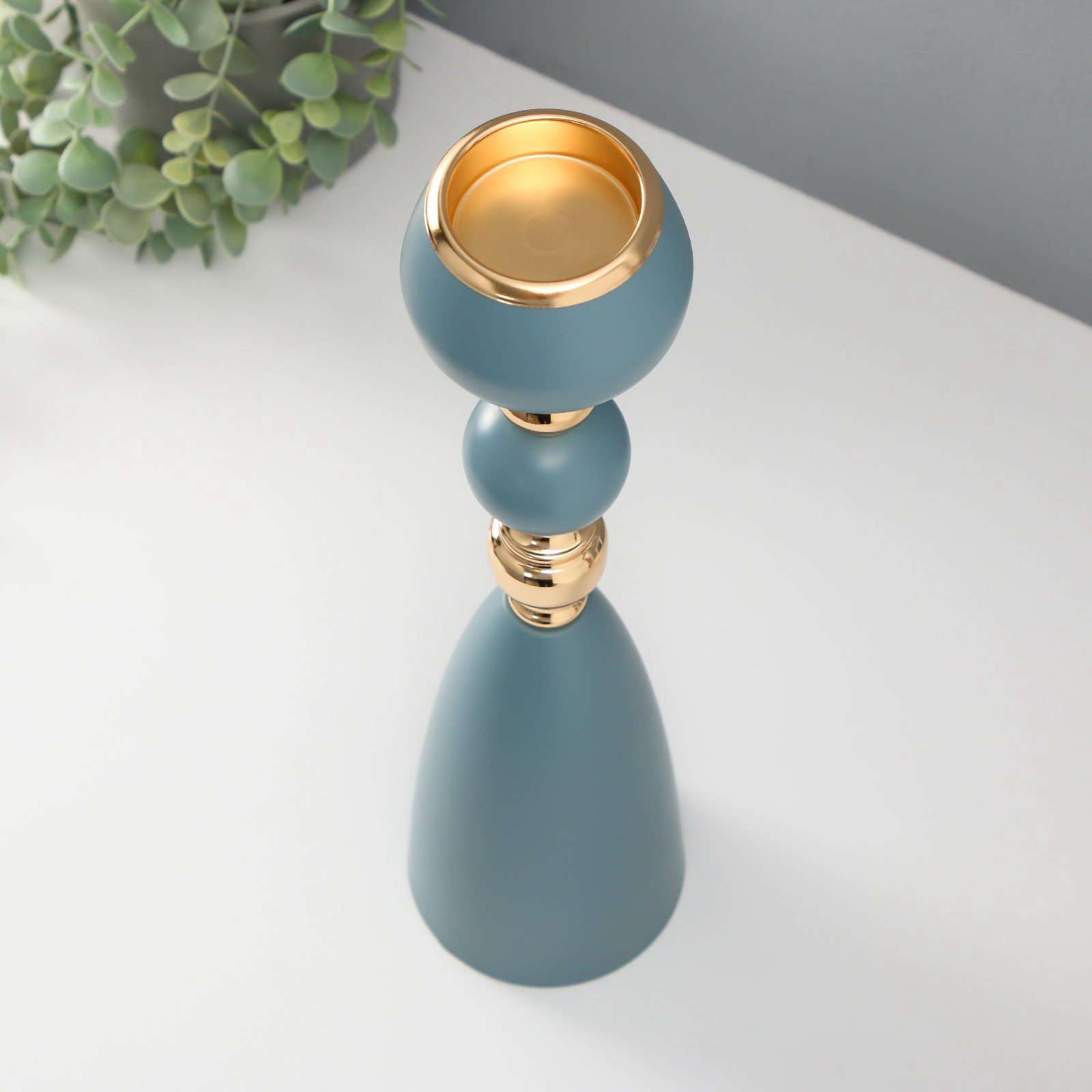 Металлический подсвечник на 1 свечу "Голубая лагуна", d=5 см, золото, 10x10x40.5 см, 10x10x35.5 см., Китай