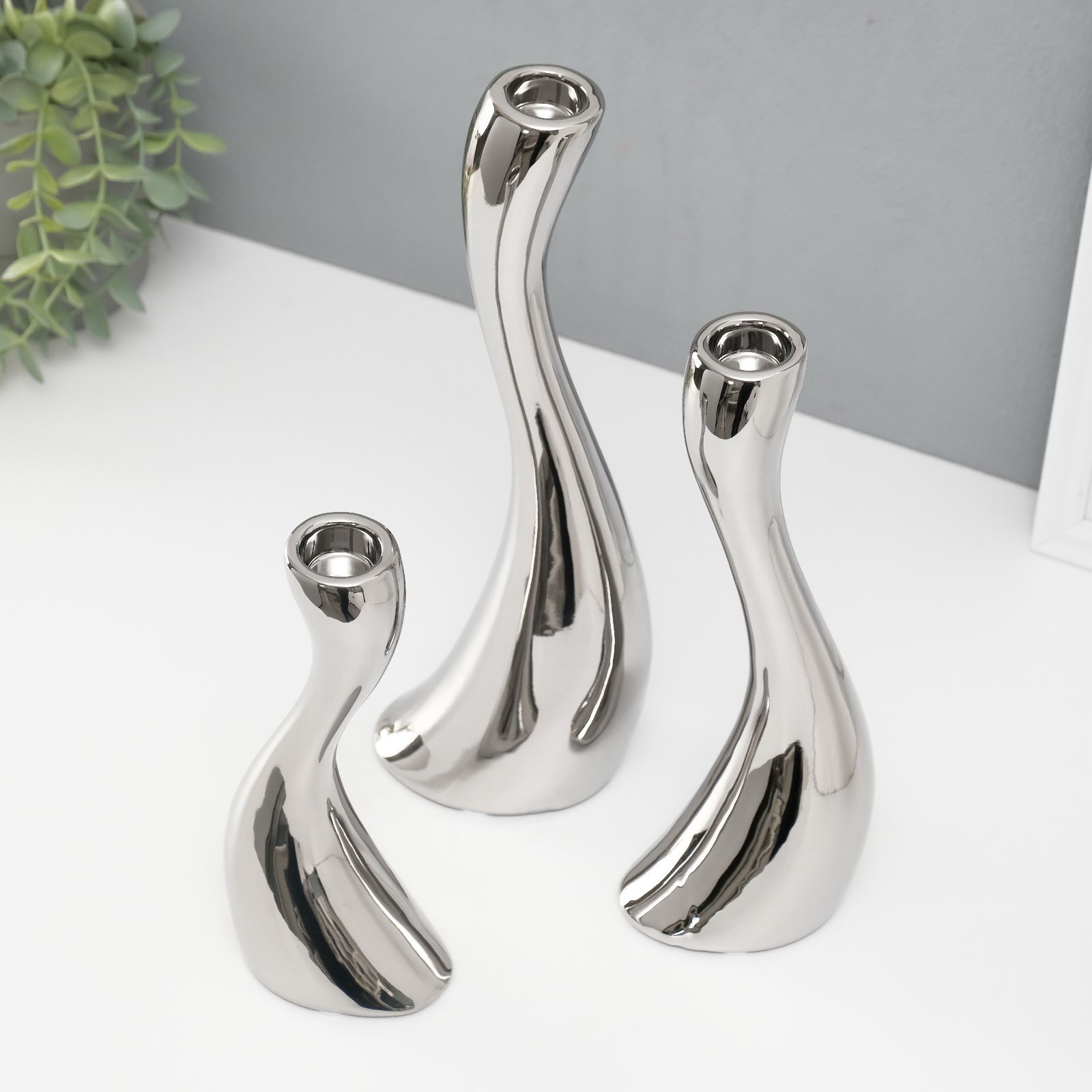 Подсвечник на 1 свечу "Волна", набор 3 шт., d=2.5 см, серебро, h=20; 25; 30 см, 30 см., Китай