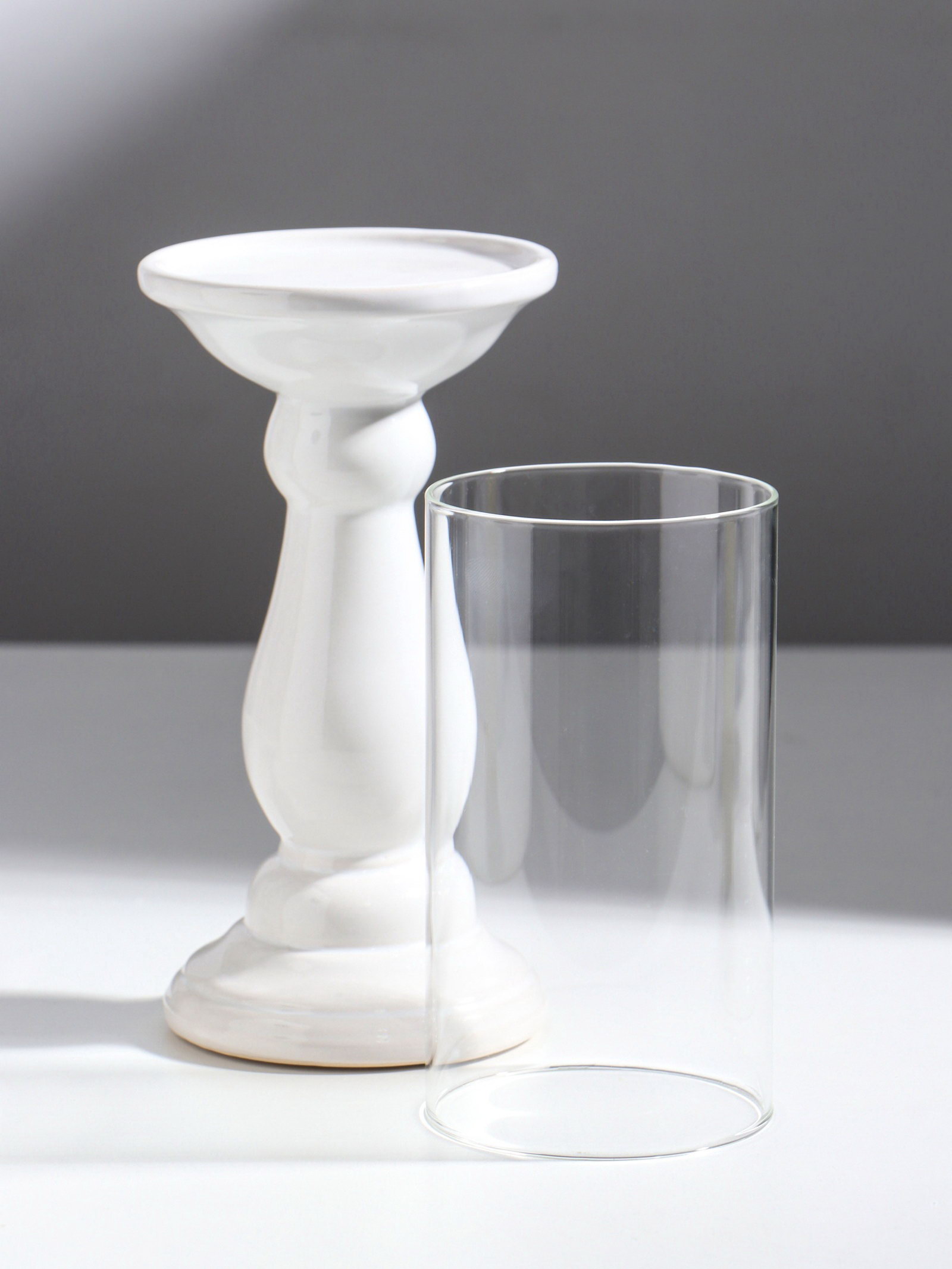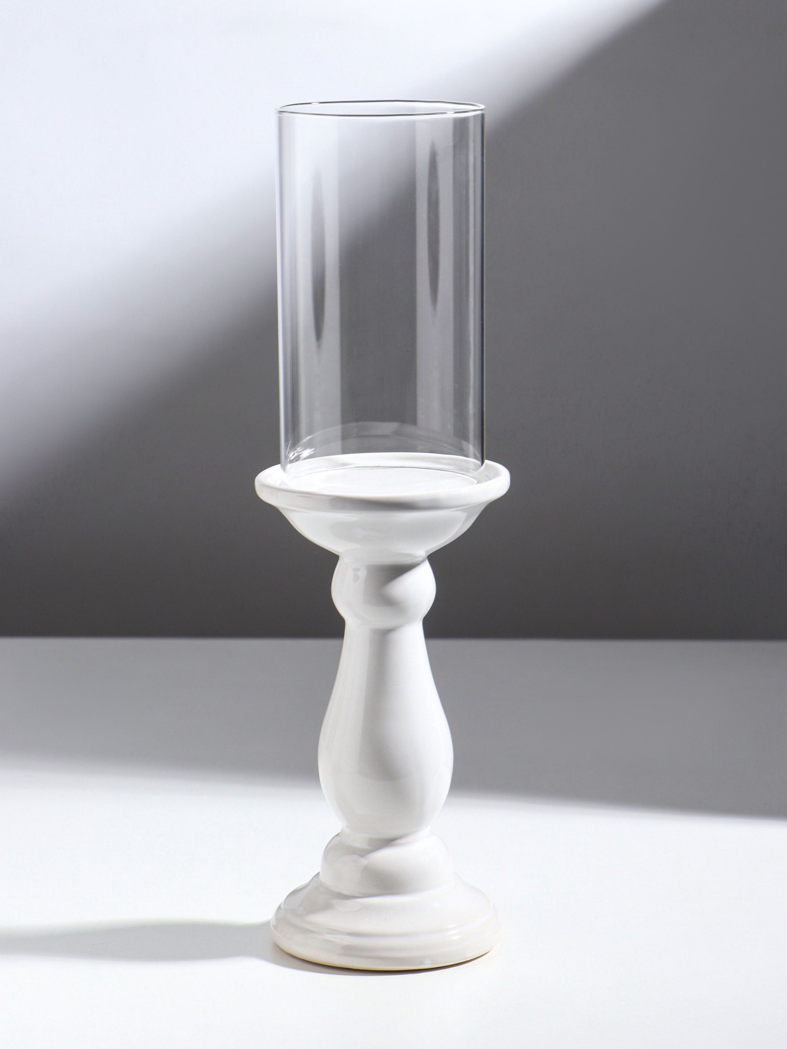 Подсвечник на 1 свечу "Магистр", керамика, стекло, d=8 см, белый, 9.5x9.5x32 см, 9.5x9.5x32 см., Китай