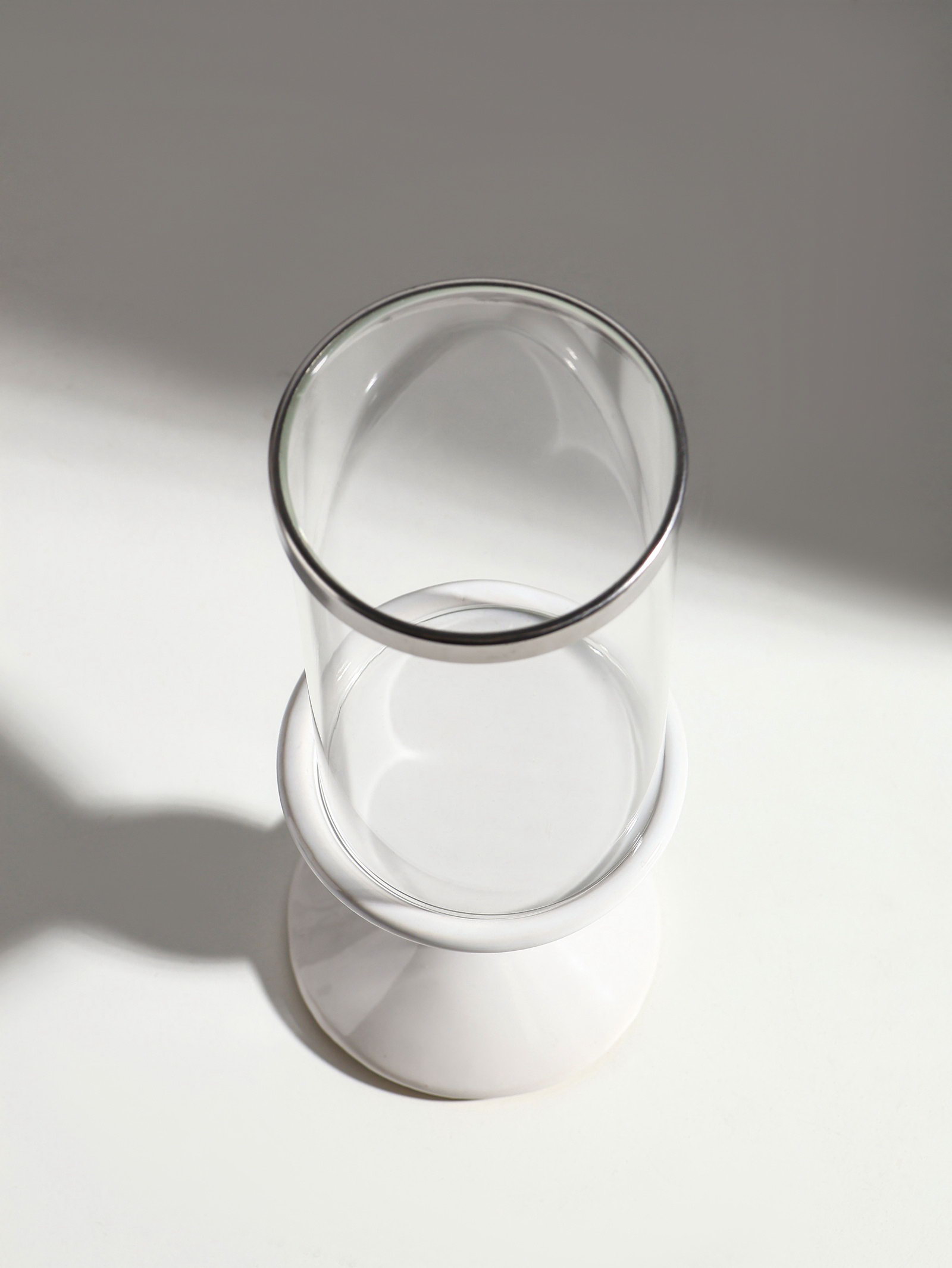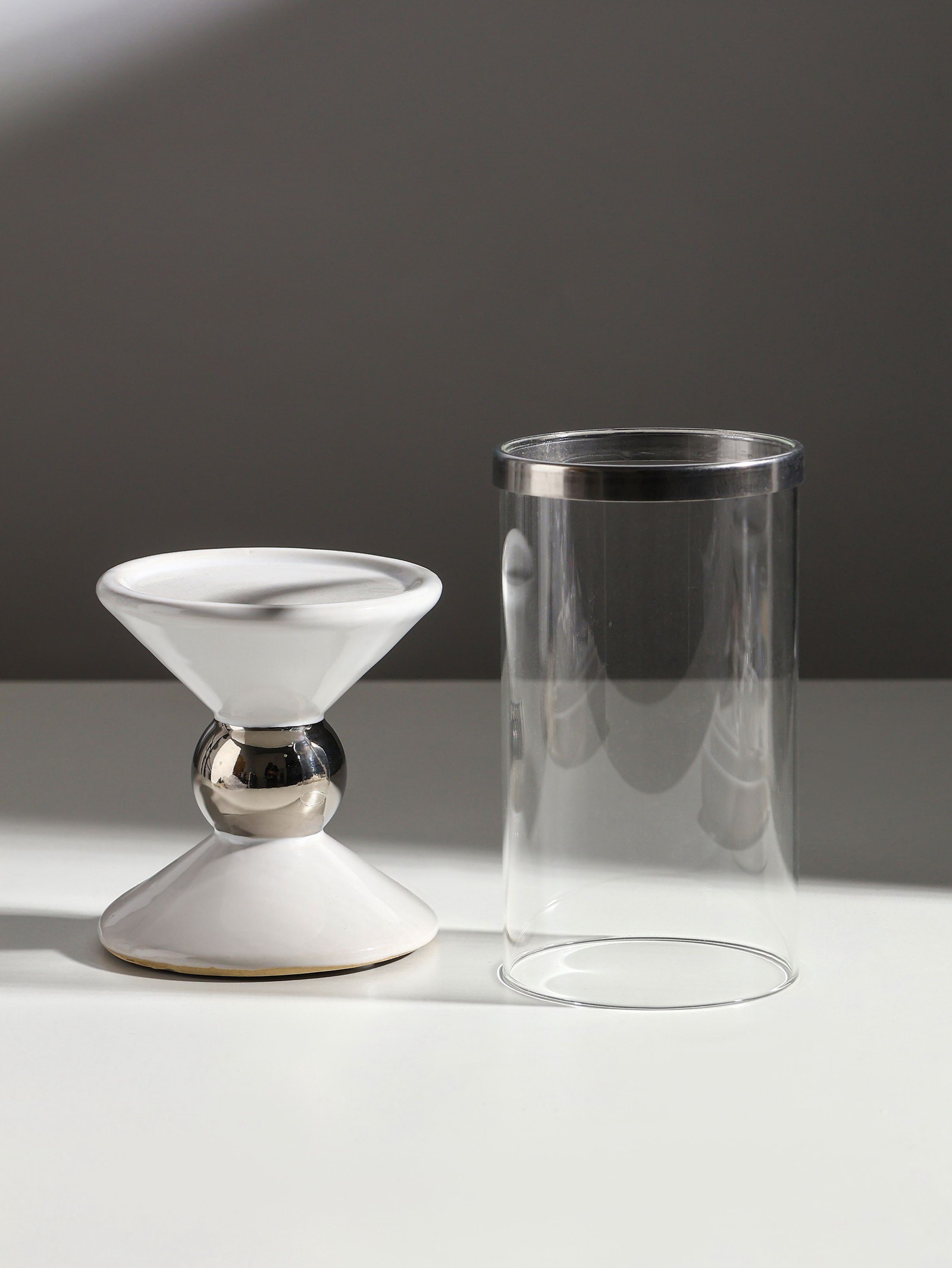 Подсвечник на 1 свечу "Параллели", керамика, стекло, d=7.5 см, белый с серебром, 9.5x9.5x24 см, 9.5x9.5x24 см., Китай