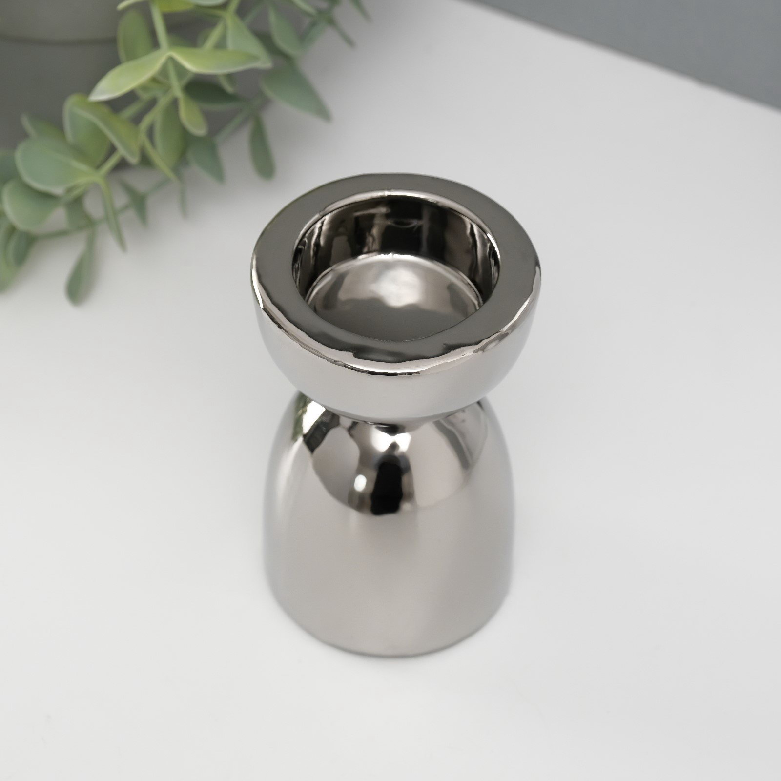 Подсвечник керамика на 1 свечу "Иллюзорность", d=4 см, серебро, 6.5x6.5x10 см, 6.5x6.5x10 см., Китай