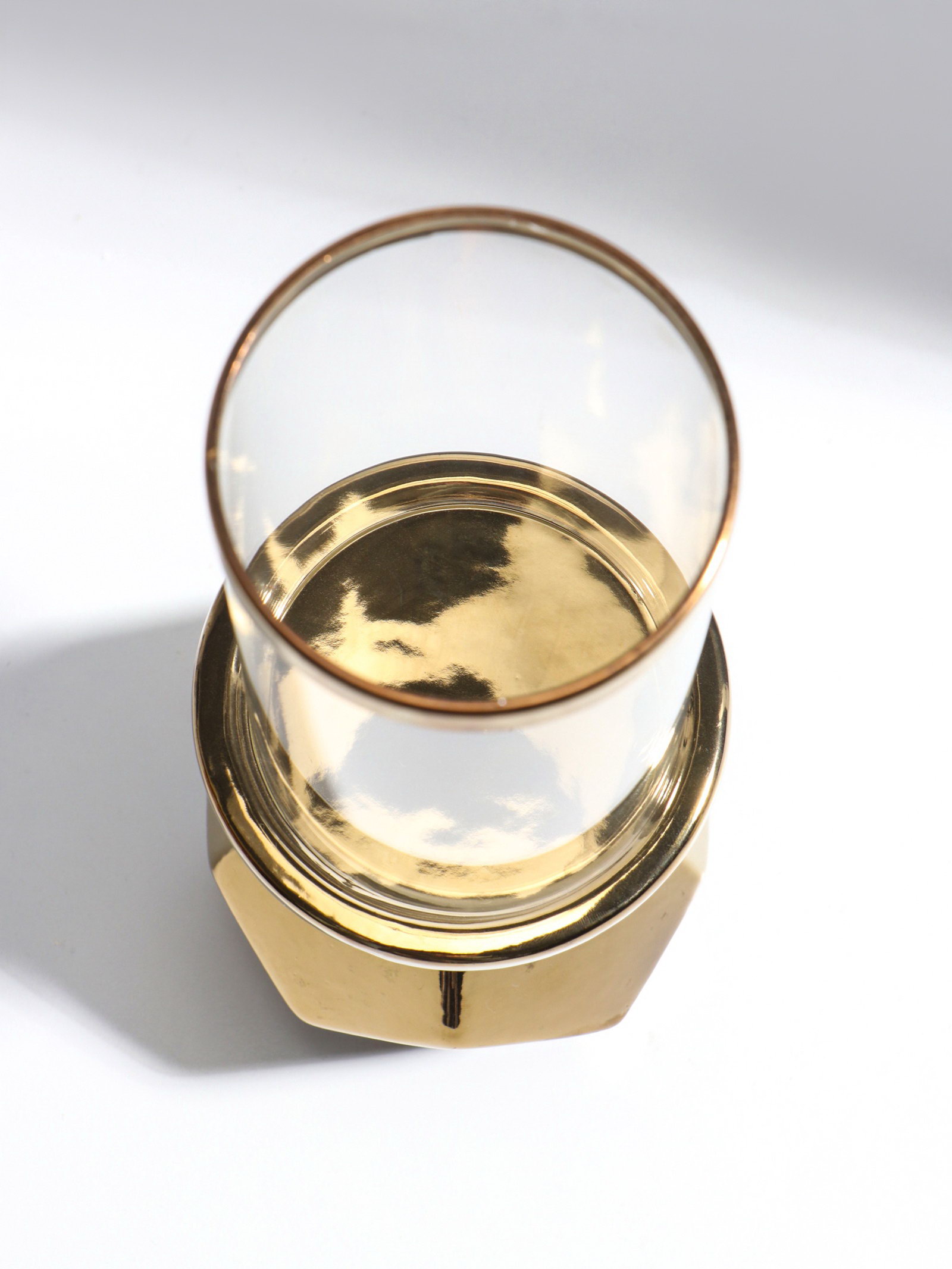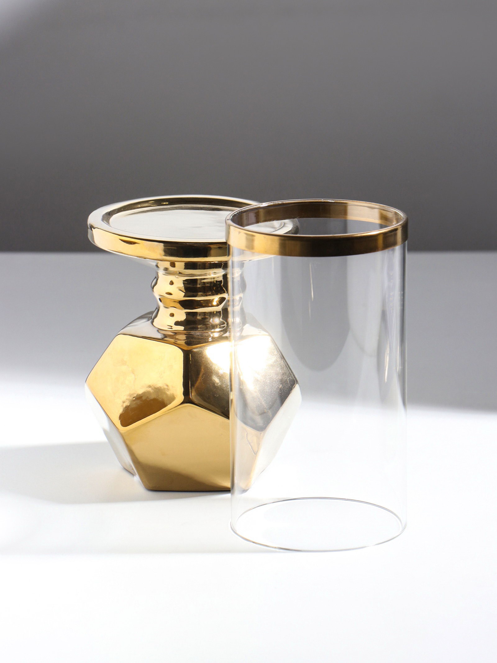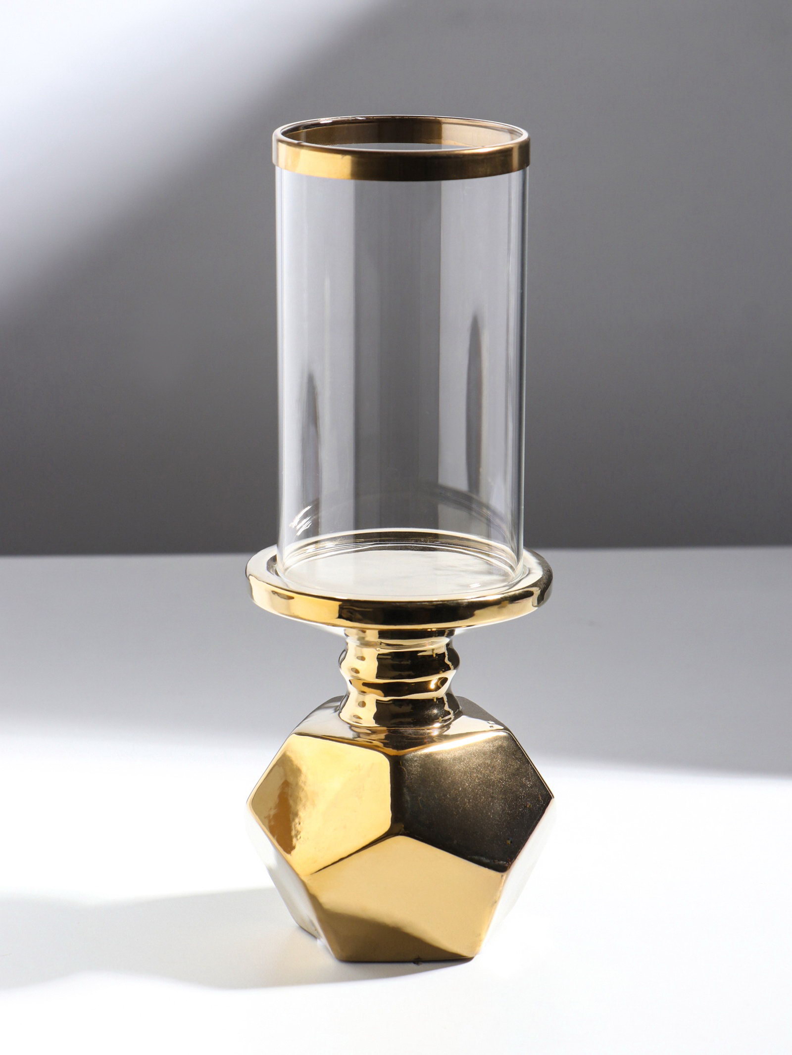 Подсвечник на 1 свечу "Грани", керамика, стекло, d=7.5 см, золото, 10.5x10.5x27 см, 10.5x10.5x27 см., Китай