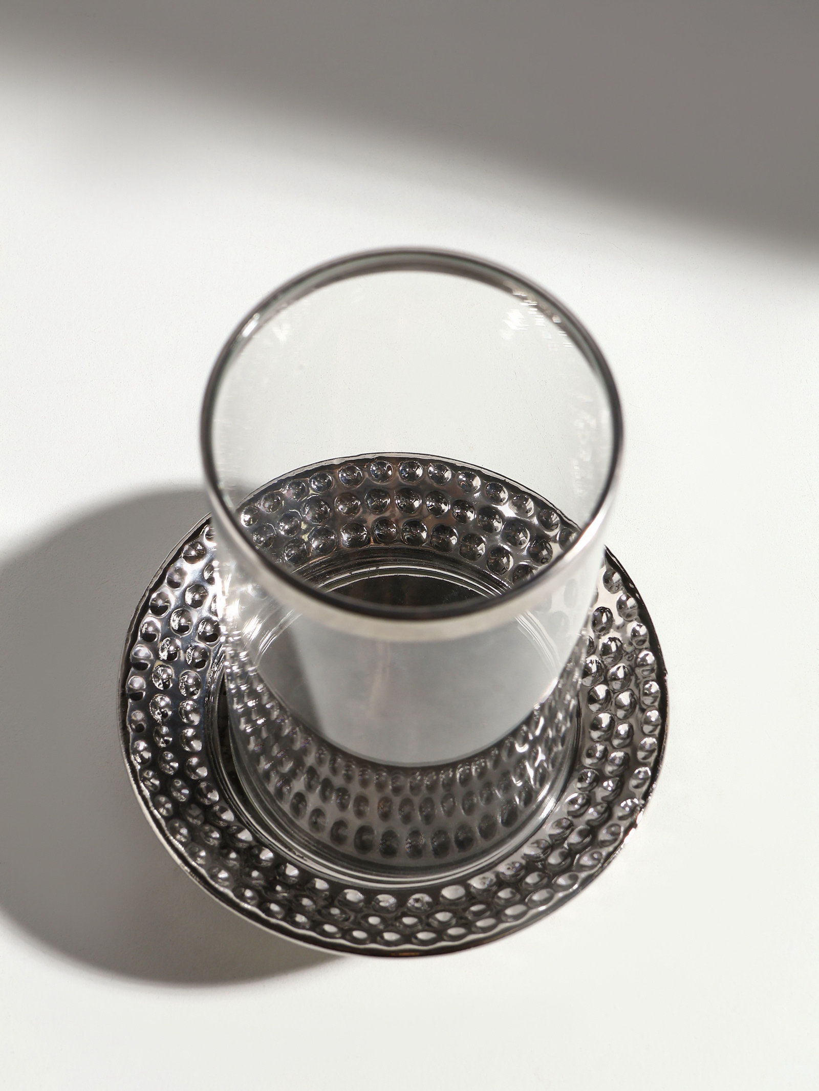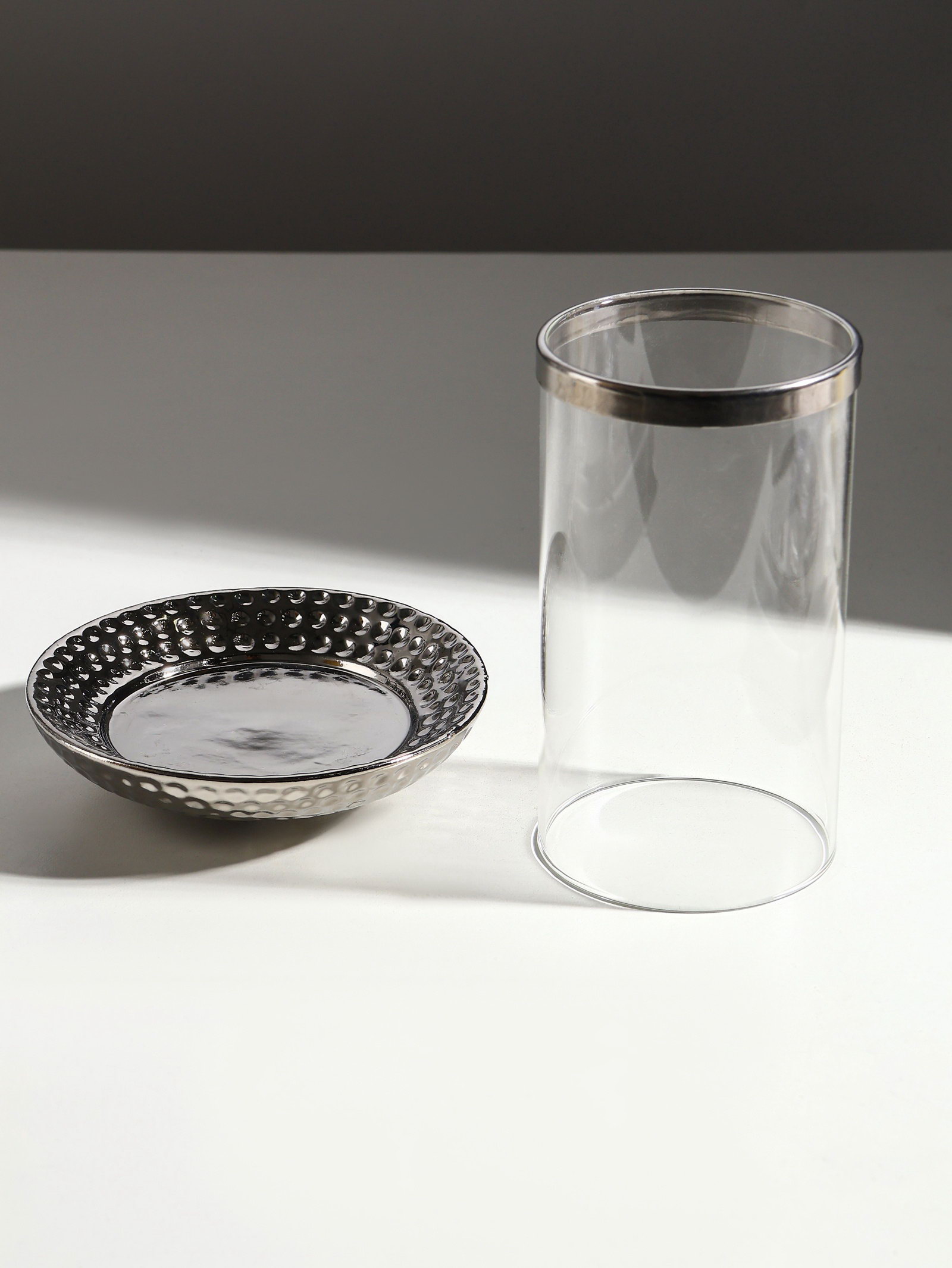 Подсвечник на 1 свечу "Моро", керамика, стекло, d=8 см, серебро, 12x12x17.2 см, 12x12x17.2 см., Китай