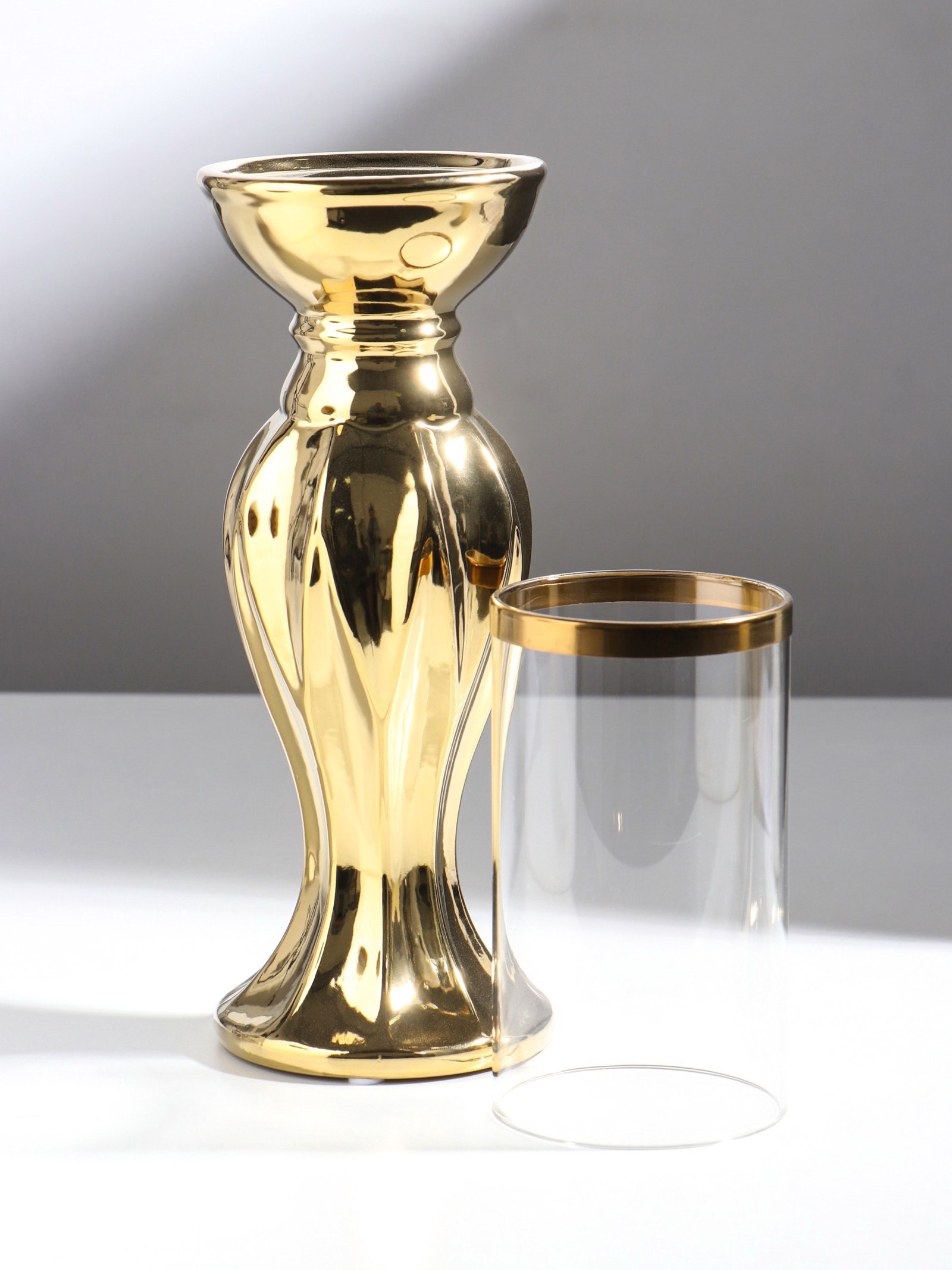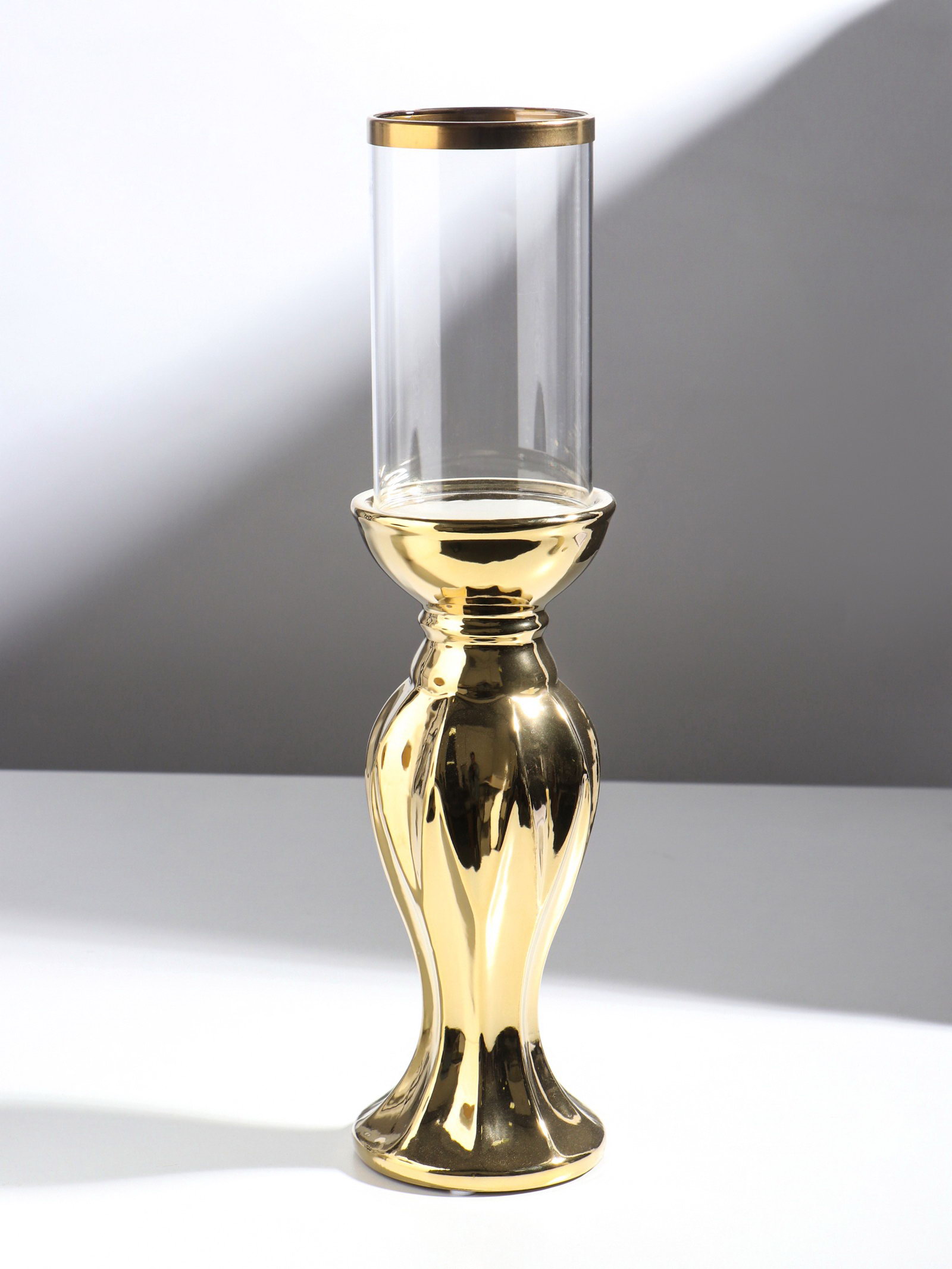 Подсвечник на 1 свечу "Версаль", керамика, стекло, d=7.5 см, золото, 9.5x9.5x38.5 см, 9.5x9.5x38.5 см., Китай