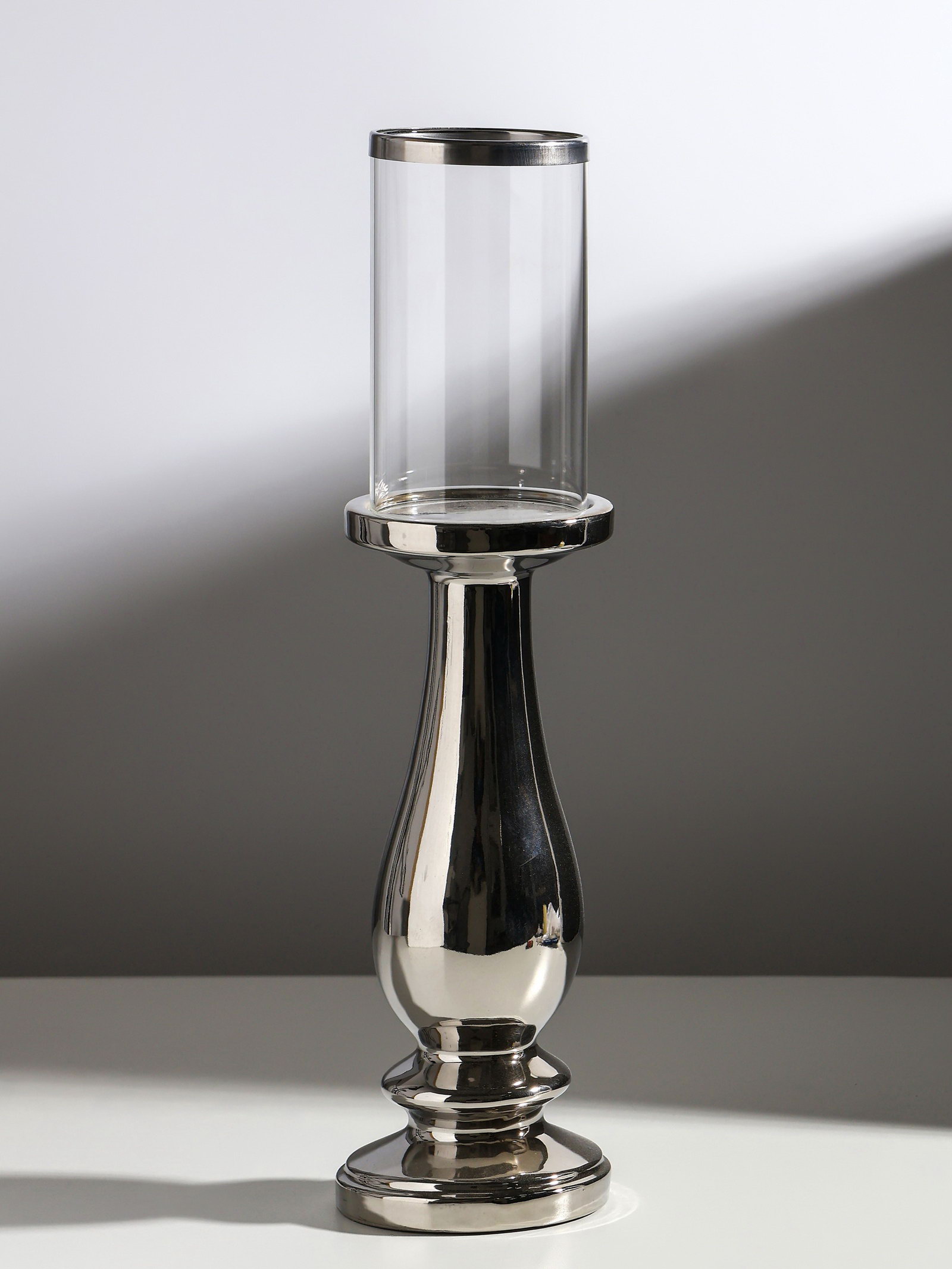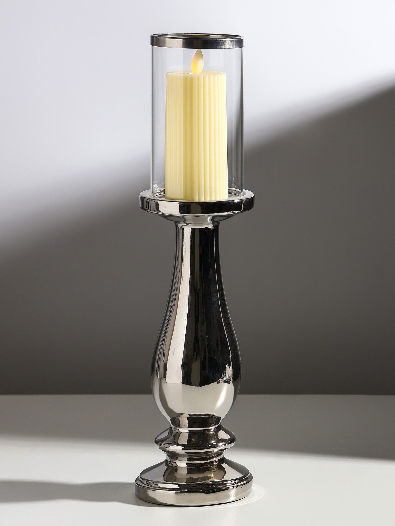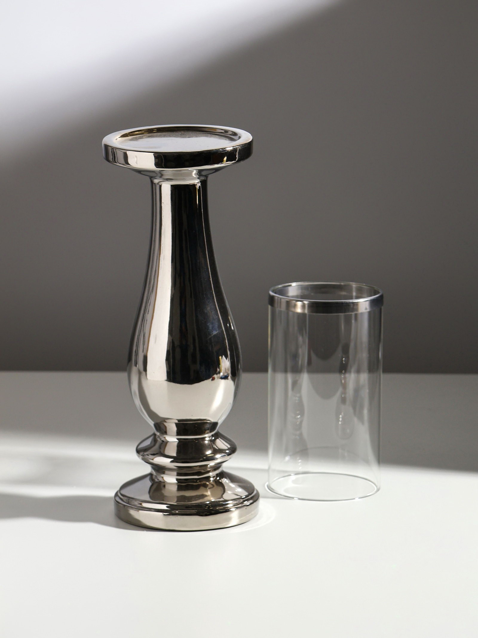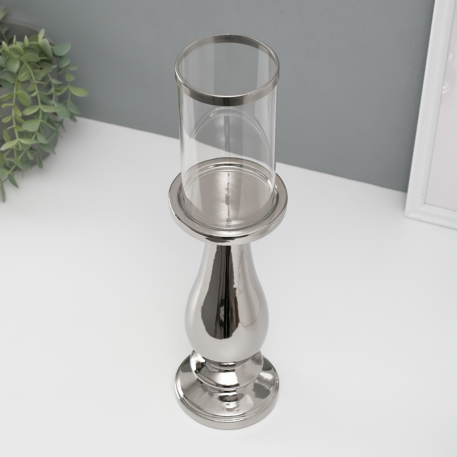 Подсвечник на 1 свечу "Аванти", керамика, стекло, d=8 см, серебро, 10x10x40.5 см, 10x10x40.5 см., Китай