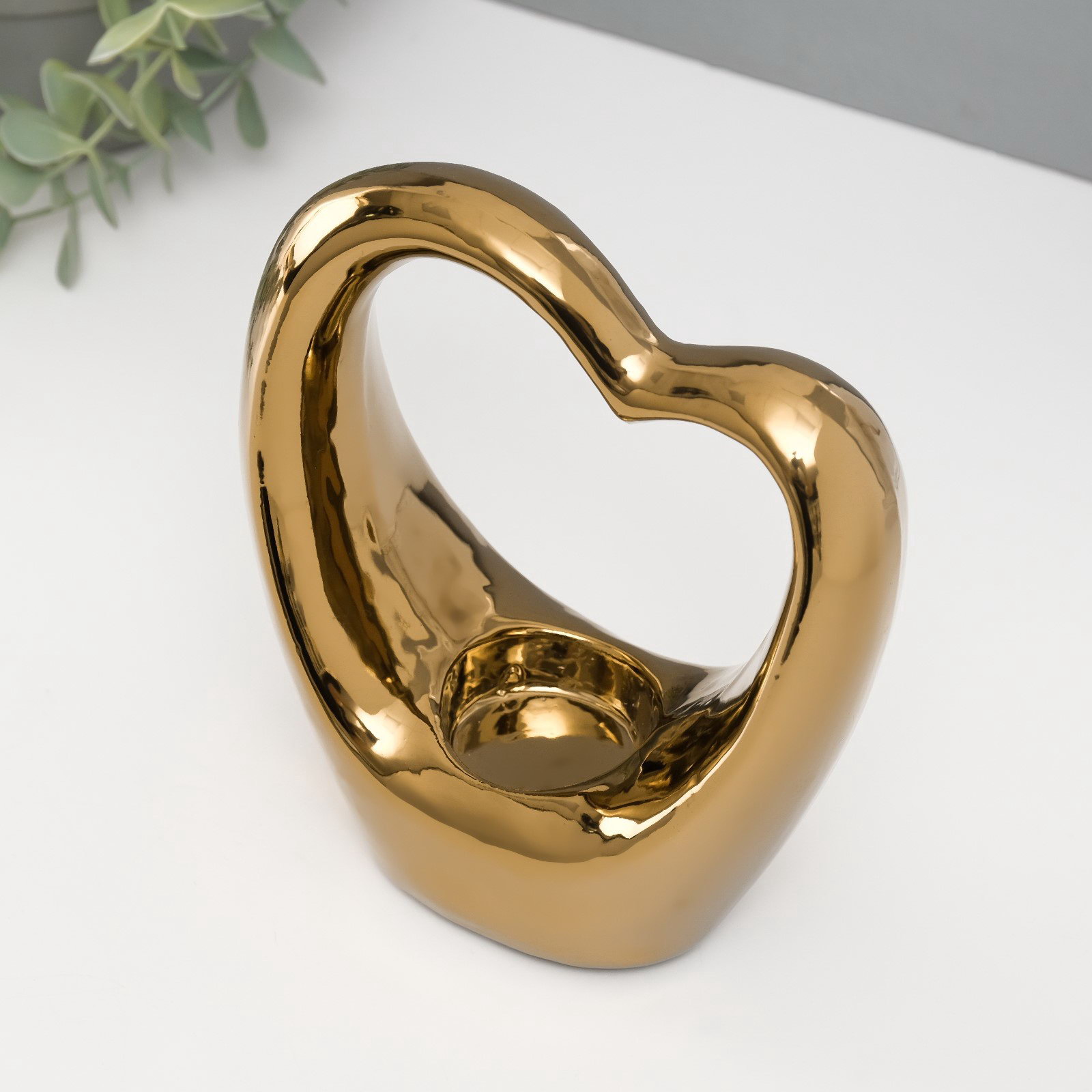 Подсвечник на 1 свечу "Сердце", d=4 см, золото, 14.5x6x17 см, 6x14.5x17 см., Китай