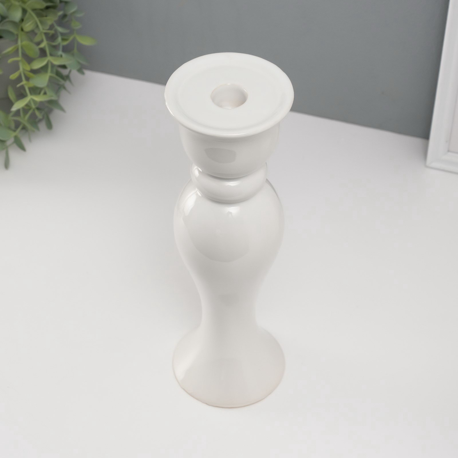 Подсвечник на 1 свечу "Вуаль", d=1.5 см, белый, 9.8x9.8x30.5 см, 9.8x9.8x30.5 см., Китай