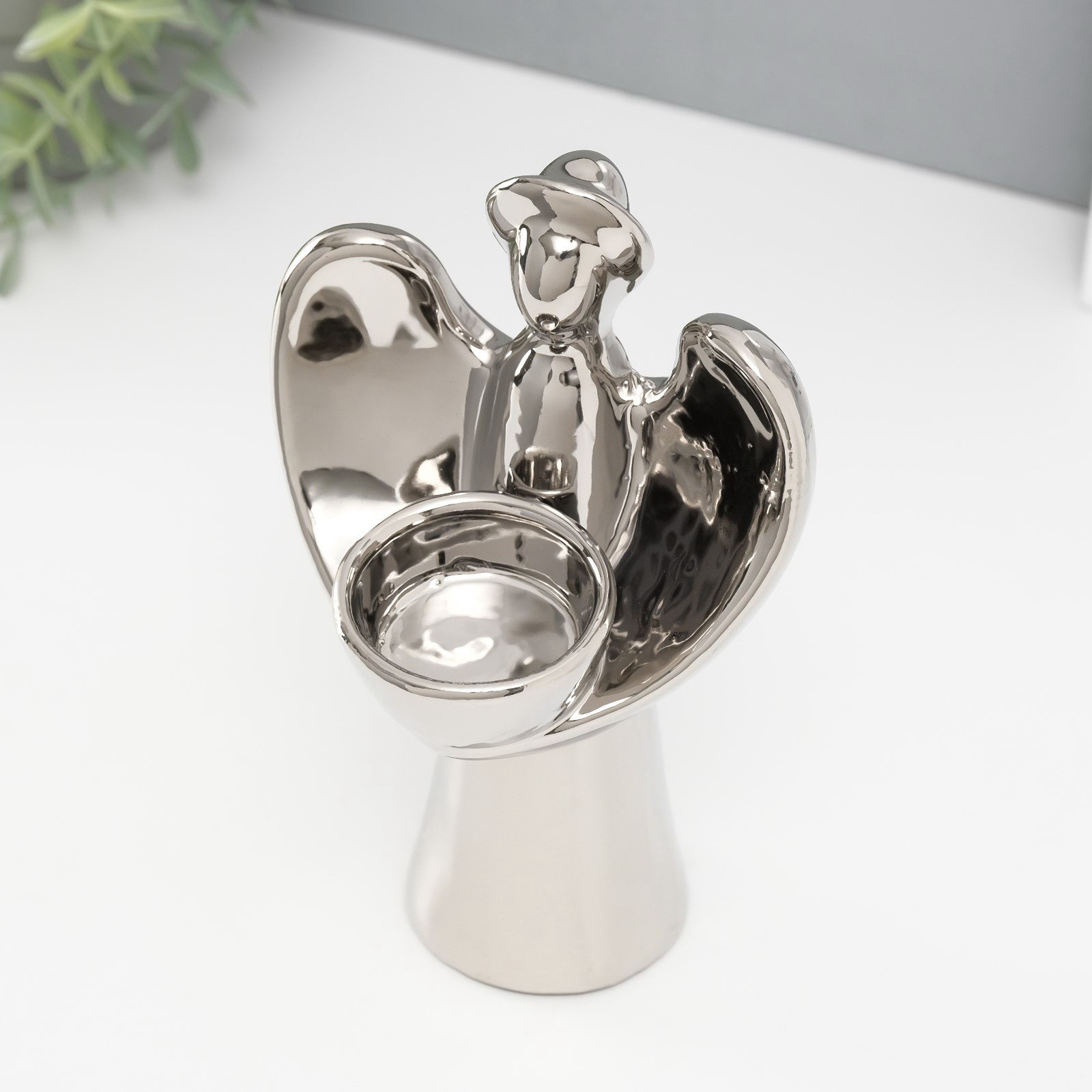 Подсвечник на 1 свечу "Ангел с нимбом", d=4 см, серебро, 11.5x10x18.5 см, 10x11.5x18.5 см., Китай