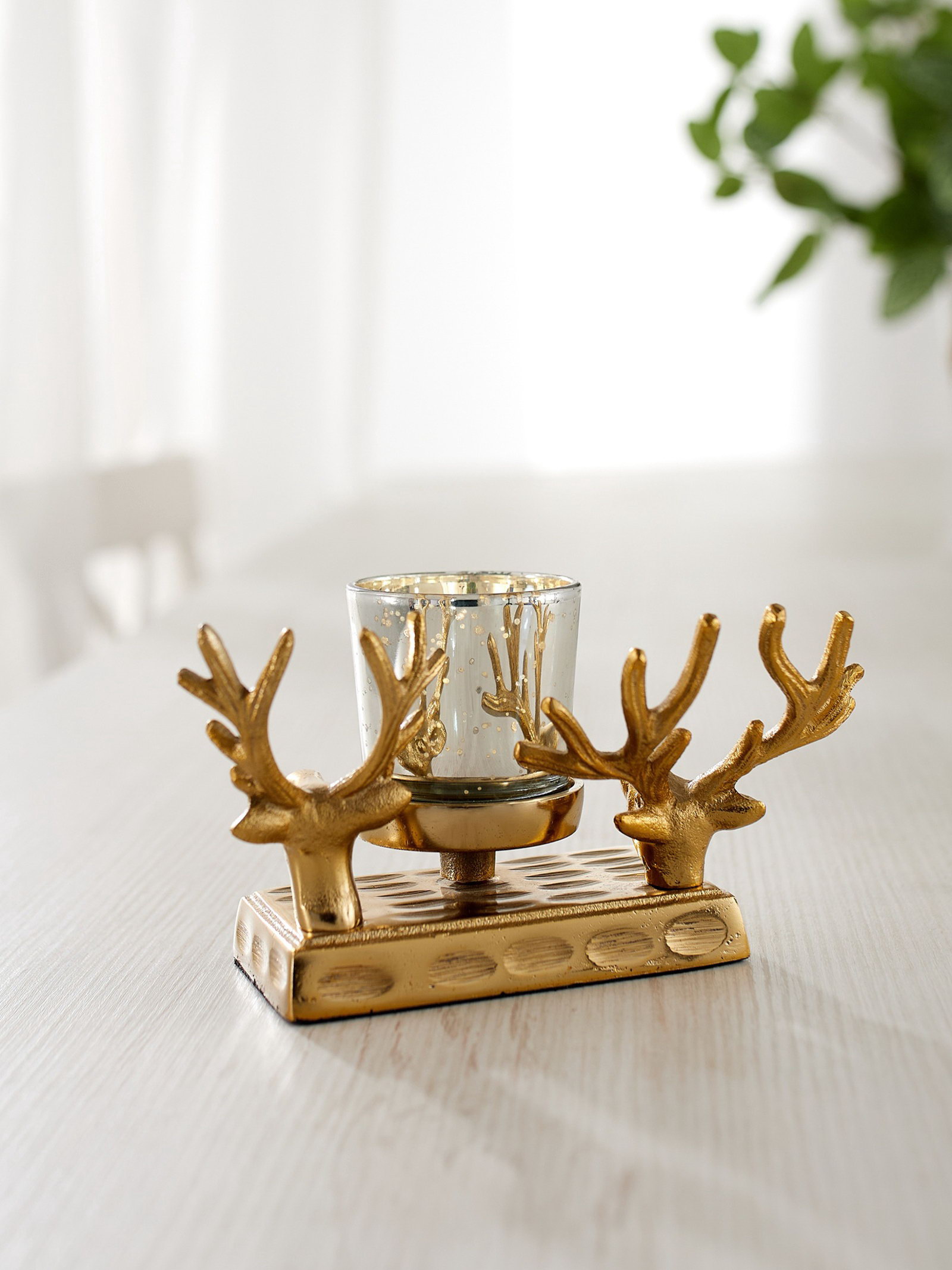 Подсвечник "Олени", 17x11x10 см, алюминий, 11x17x10 см., Индия