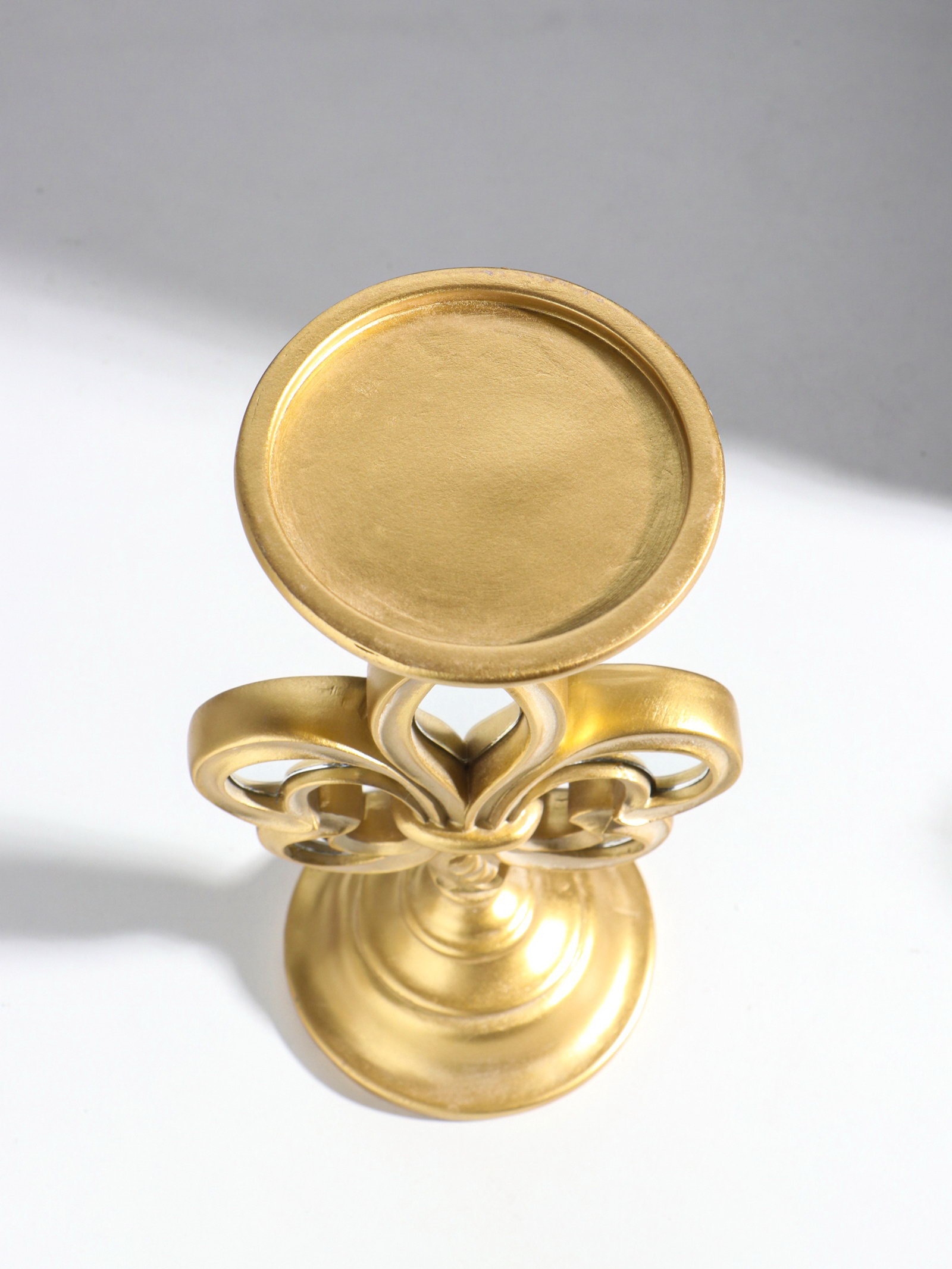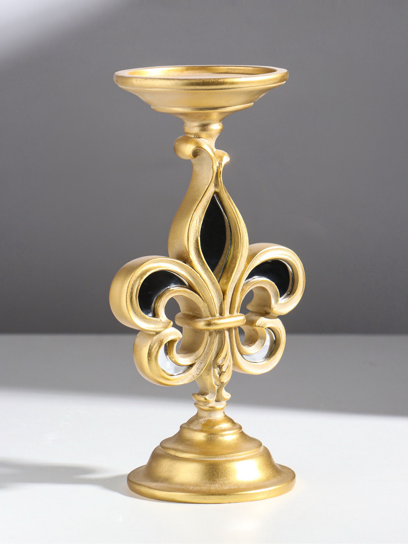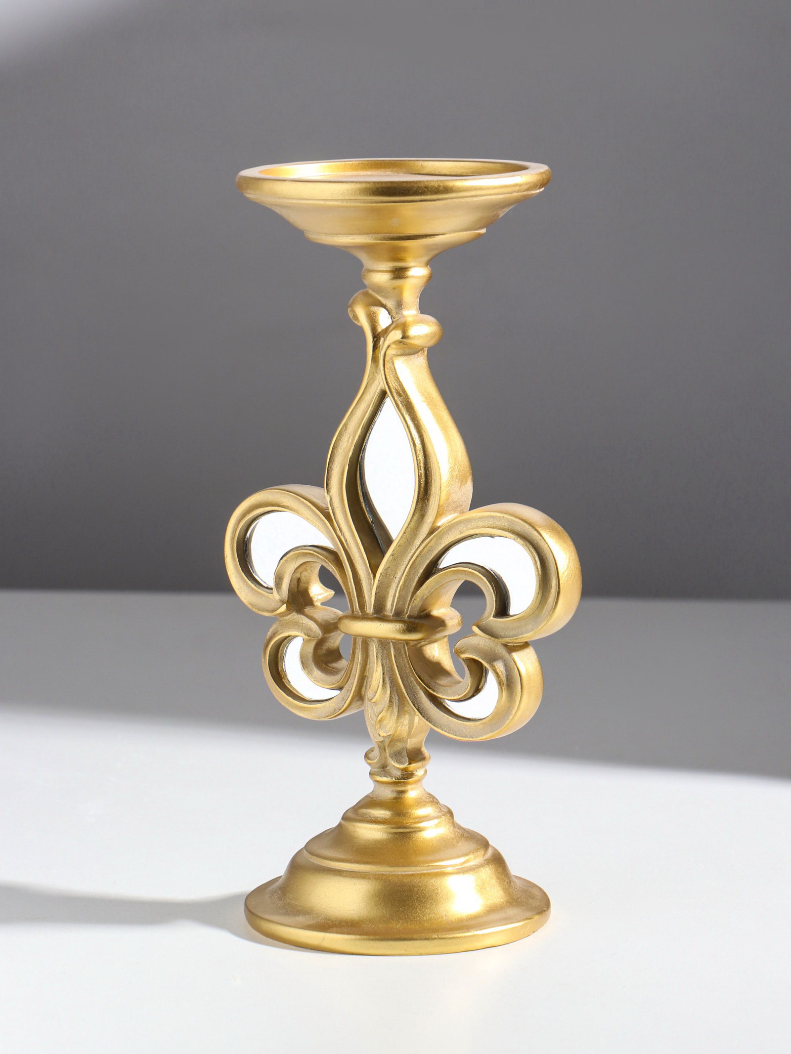 Подсвечник на 1 свечу "Геральдическая лилия", полистоун, зеркало, золото, 9x9x23 см, 9x9x23 см., Китай