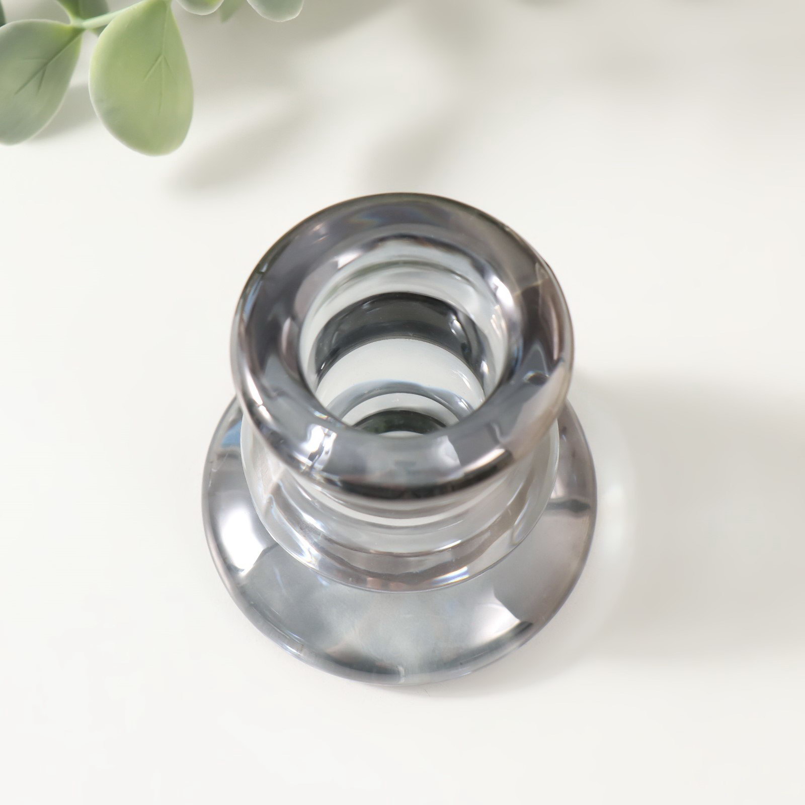 Стеклянный подсвечник на 1 свечу "Лучано", d=2.2 см, прозрачный серый, 5.5x5.2x5.3 см, 5.2x5.5x5.3 см., Китай