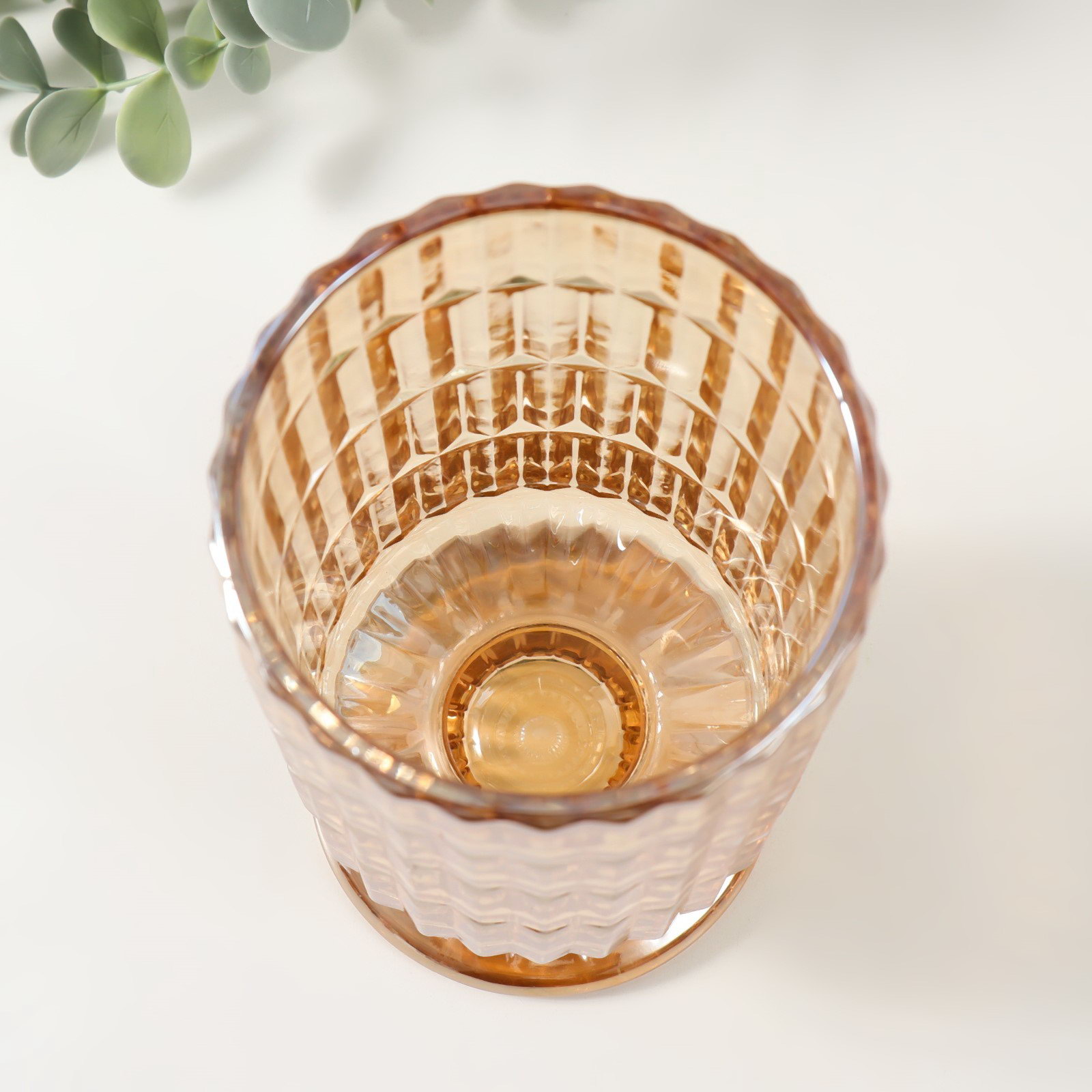 Стеклянный подсвечник на 1 свечу "Грани. На ножке", d=9 см, прозрачный карамель, 10x10x17.5 см, 10x10x17.5 см., Китай