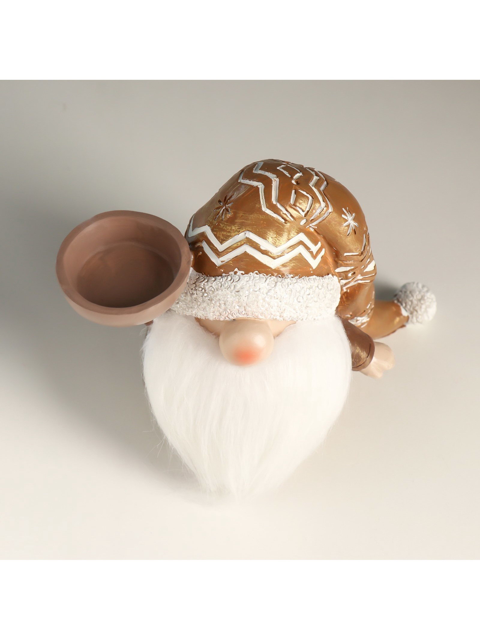 Подсвечник на 1 свечу "Фигурка: Дед Мороз в золотом колпаке с узорами", полистоун, 18x9.5x13 см, Китай