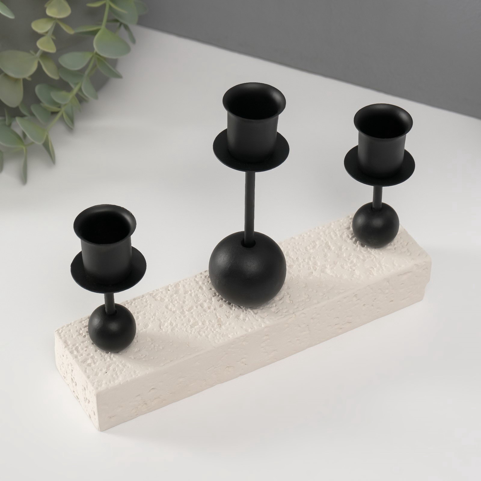 Подсвечник на 3 свечи "Три шарика", гипс, металл, d=2.5 см, 5.5x20.4x15 см, 20.4x5.5x15 см., Китай