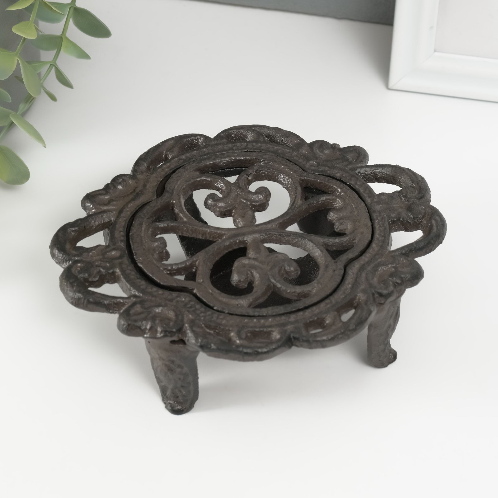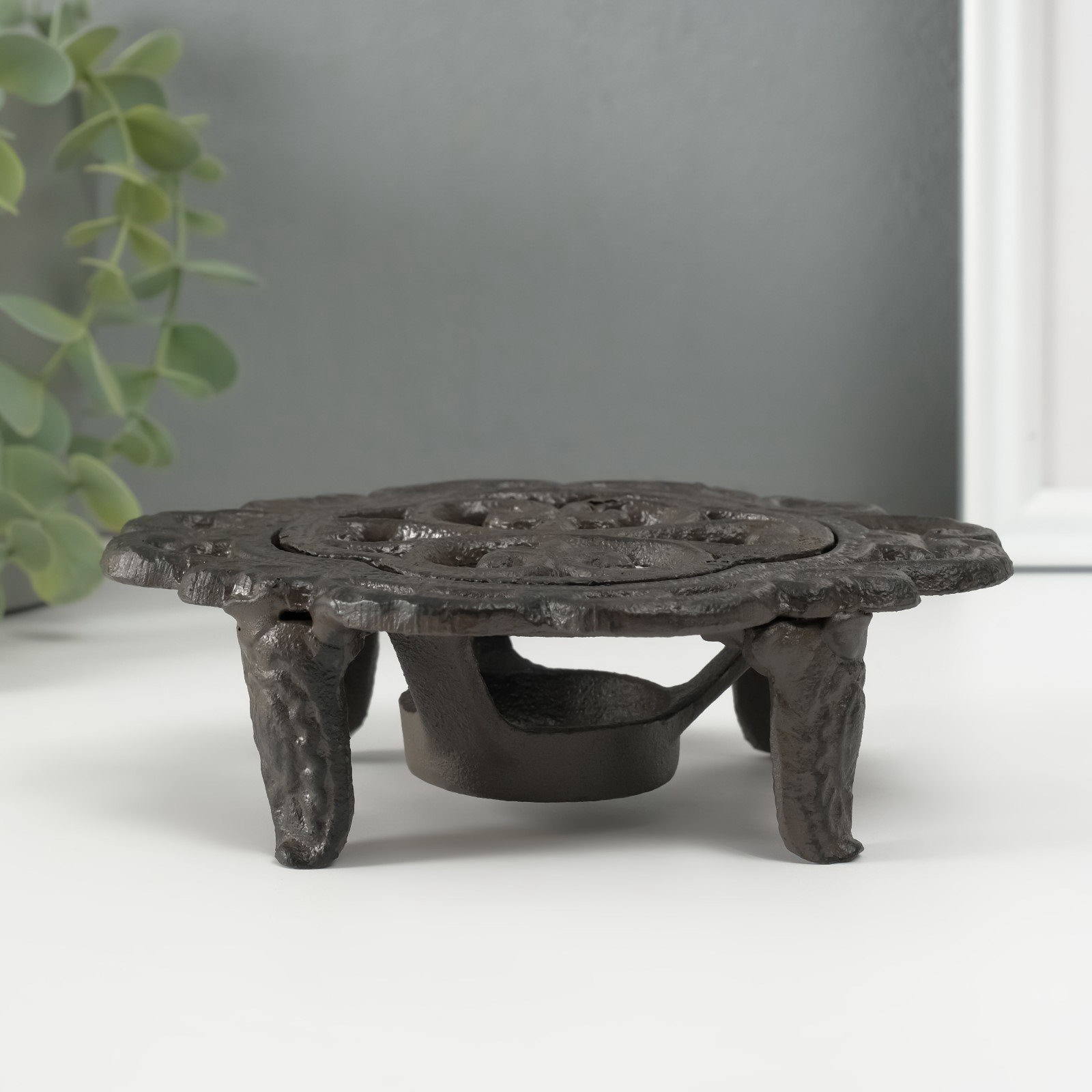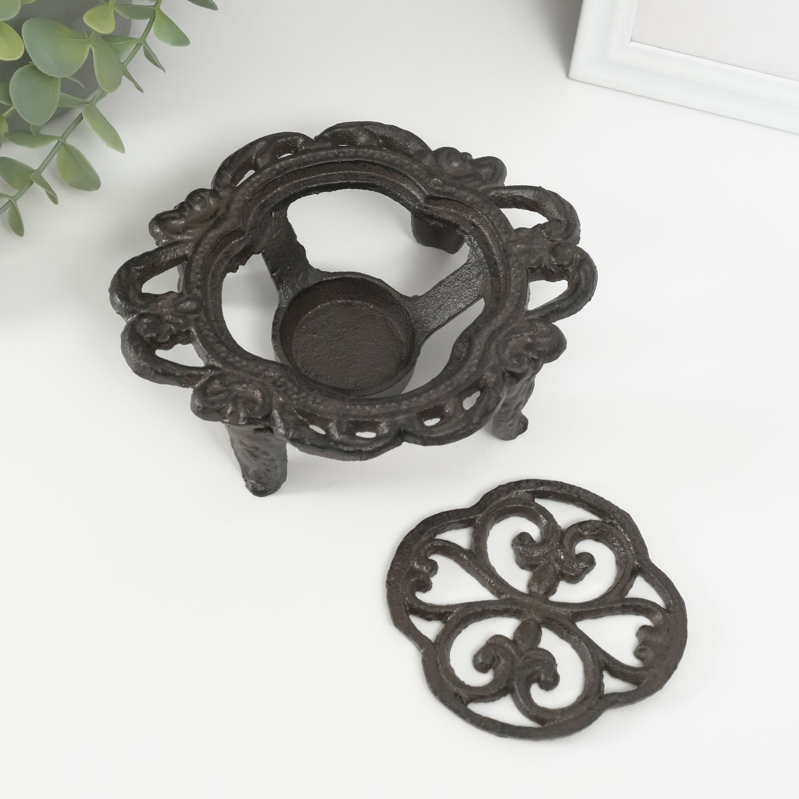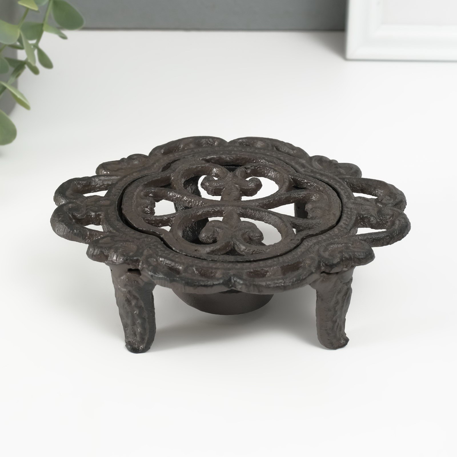 Подставка для подогрева на греющей свече "Лилия", подсвечник на 1 свечу, чугун, 15x12.5x5 см, 12.5x15x5 см., Китай