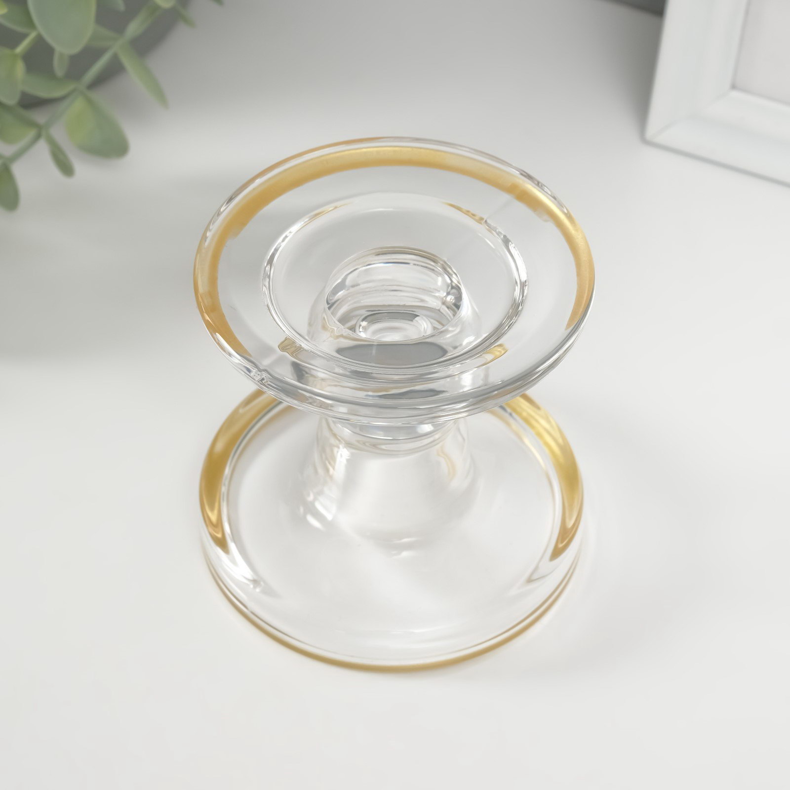 Стеклянный подсвечник на 1 свечу "Креманка", с золотом, d=2 см, 8.5x8.5x8.5 см, 8.5x8.5x8 см., Китай
