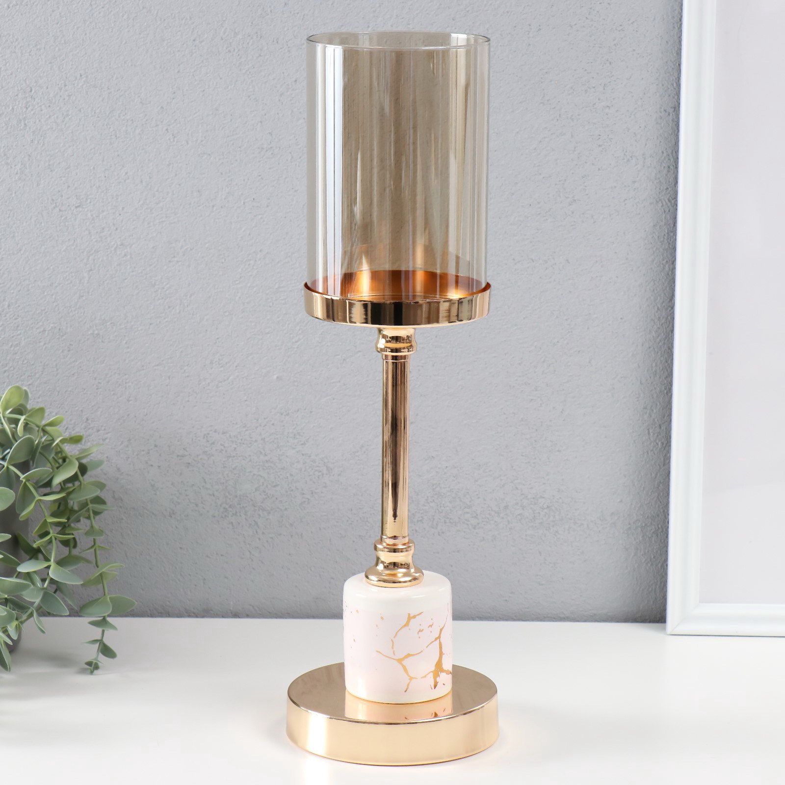 Подсвечник на 1 свечу d=9.5 см "Юнона", металл, стекло, золото, 13x13x39 см, 13x13x39 см., Китай