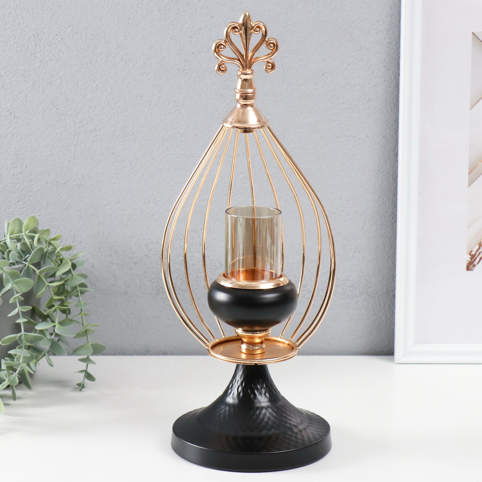 Подсвечник на 1 свечу "Эвандер", d=4.5 см, металл, стекло, 17.5x16.5x42 см, 16.5x17.5x42 см., Китай