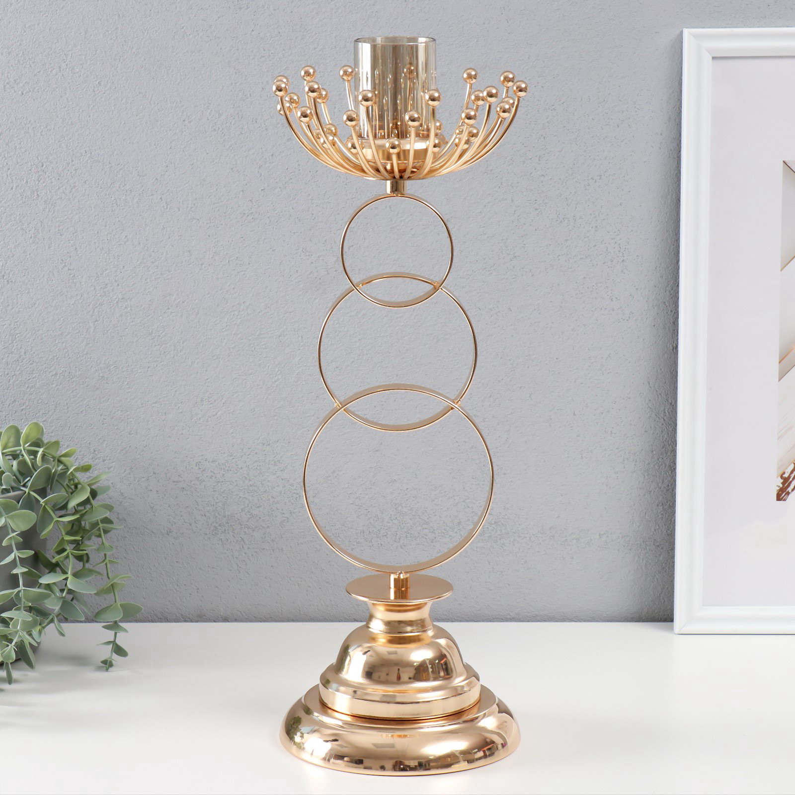 Металлический подсвечник на 1 свечу "Аурелия", золото, d=5 см, 15x15x43 см, 15x15x43 см., Китай