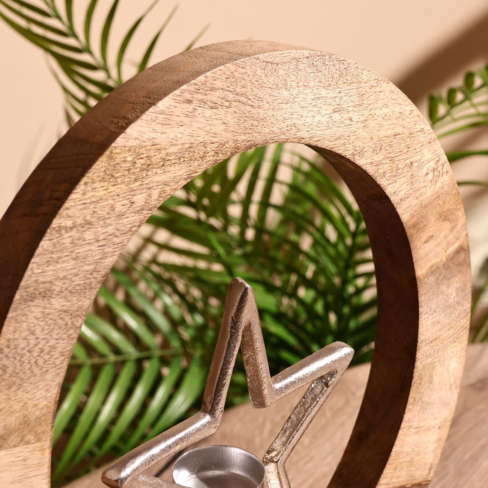 Подсвечник в деревянном кольце "Звезда" 30х8х33 см, 8x25x28 см., Индия