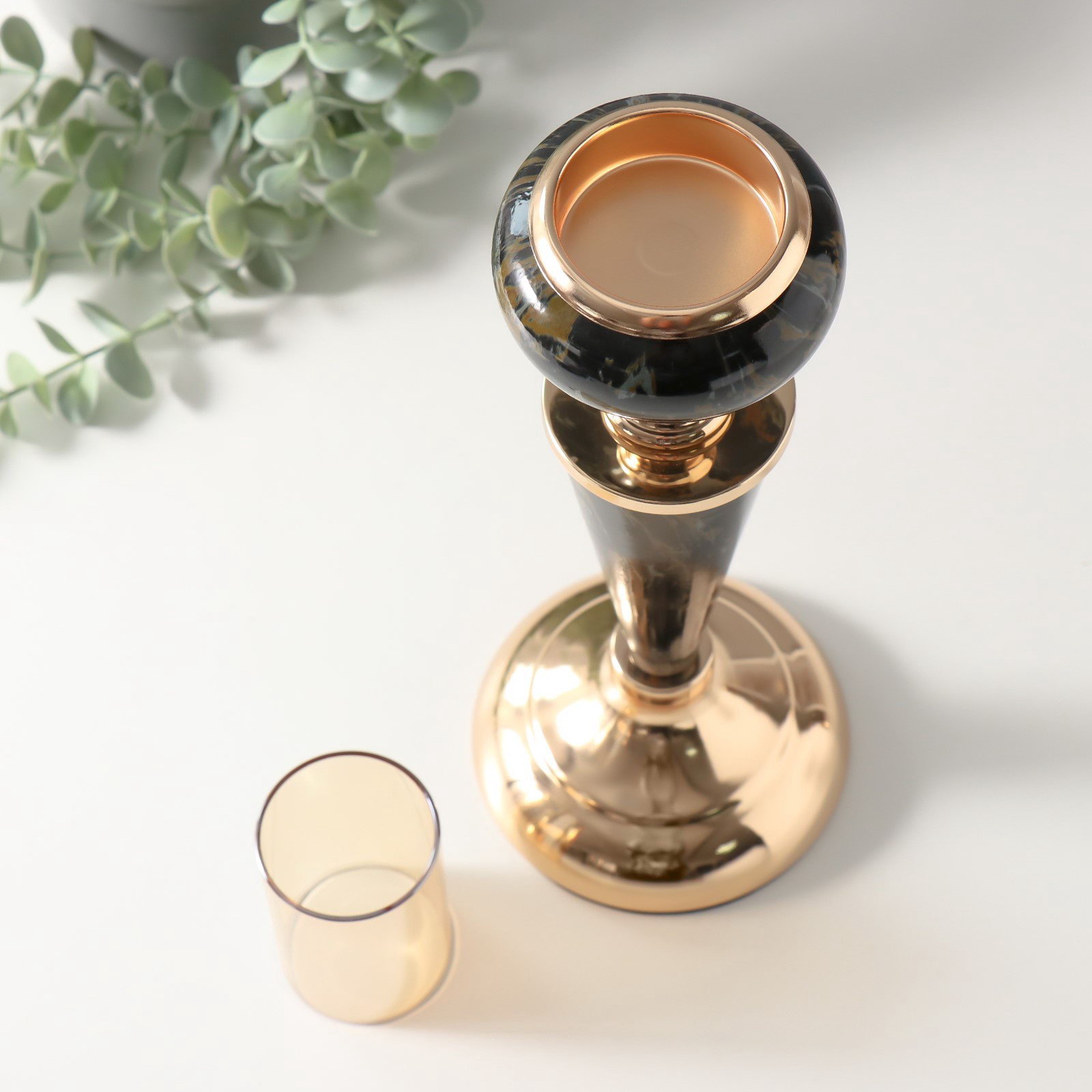 Металлический подсвечник на 1 свечу "Мрамор", d=5 см, 11x11x37 см, 11x11x37 см., Китай