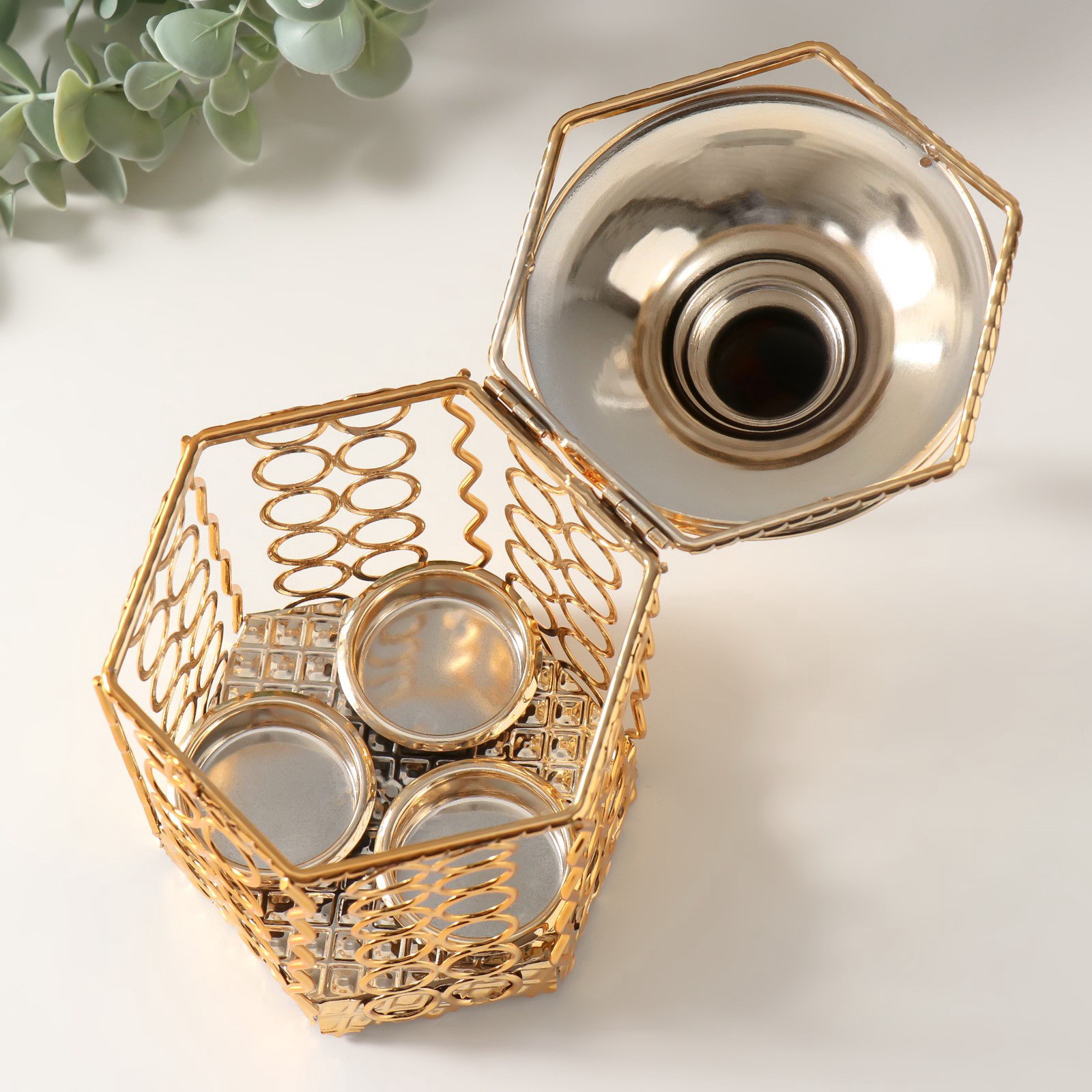 Металлический подсвечник-фонарь на 3 свечи "Круги", золото d=3.5 см, 12x12x21.5 см, 12x12x21.5 см., Китай