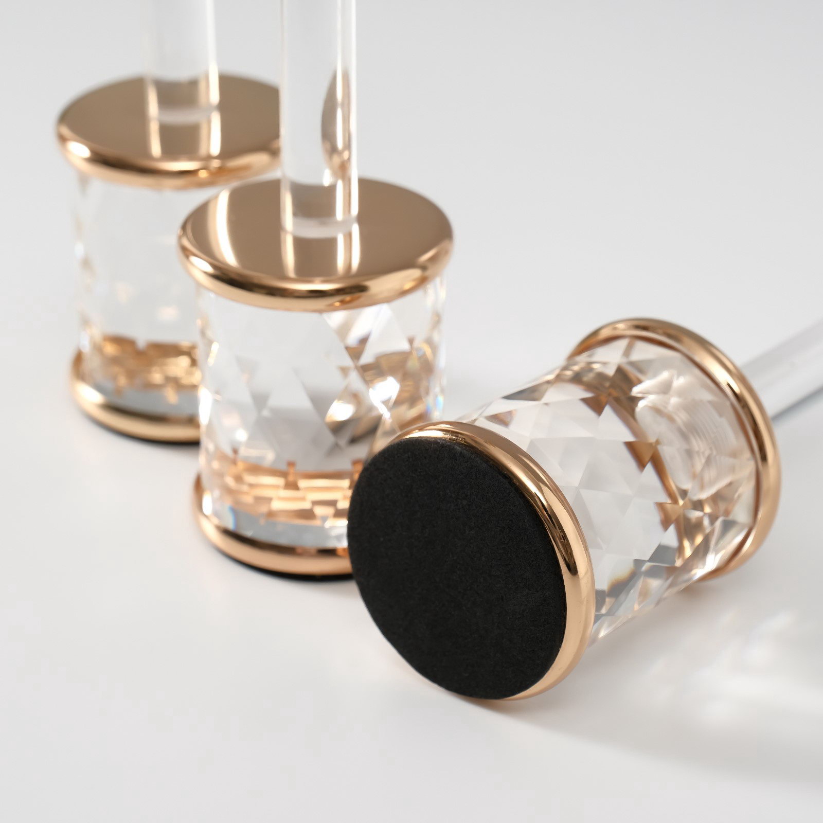 Высота, см: 19.5, 21.5, 23.5 Цвет: Золотистый, Прозрачный Размер упаковки: 11.5 x 6 x 32.5 см. Количество рожков: 3 Свеча в комплекте: Нет Диаметр под свечу, см: 2.2 Набор: Да Тематика праздника: Универсальная тематика Символ года: Нет Вид: Подсвечники Адресат: Без адресата Вид упаковки: Коробка картонная Вид упаковки: Коробка картонная tnved: 9405500000 | ||