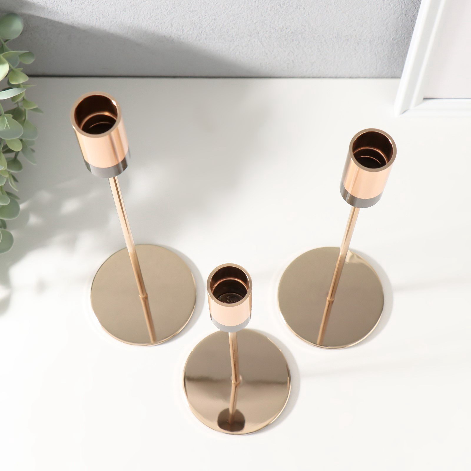 Набор подсвечников на 1 свечу "Цилиндр с чёрным низом", 3 шт., металл под золото, 24x10.5x10 см., Китай