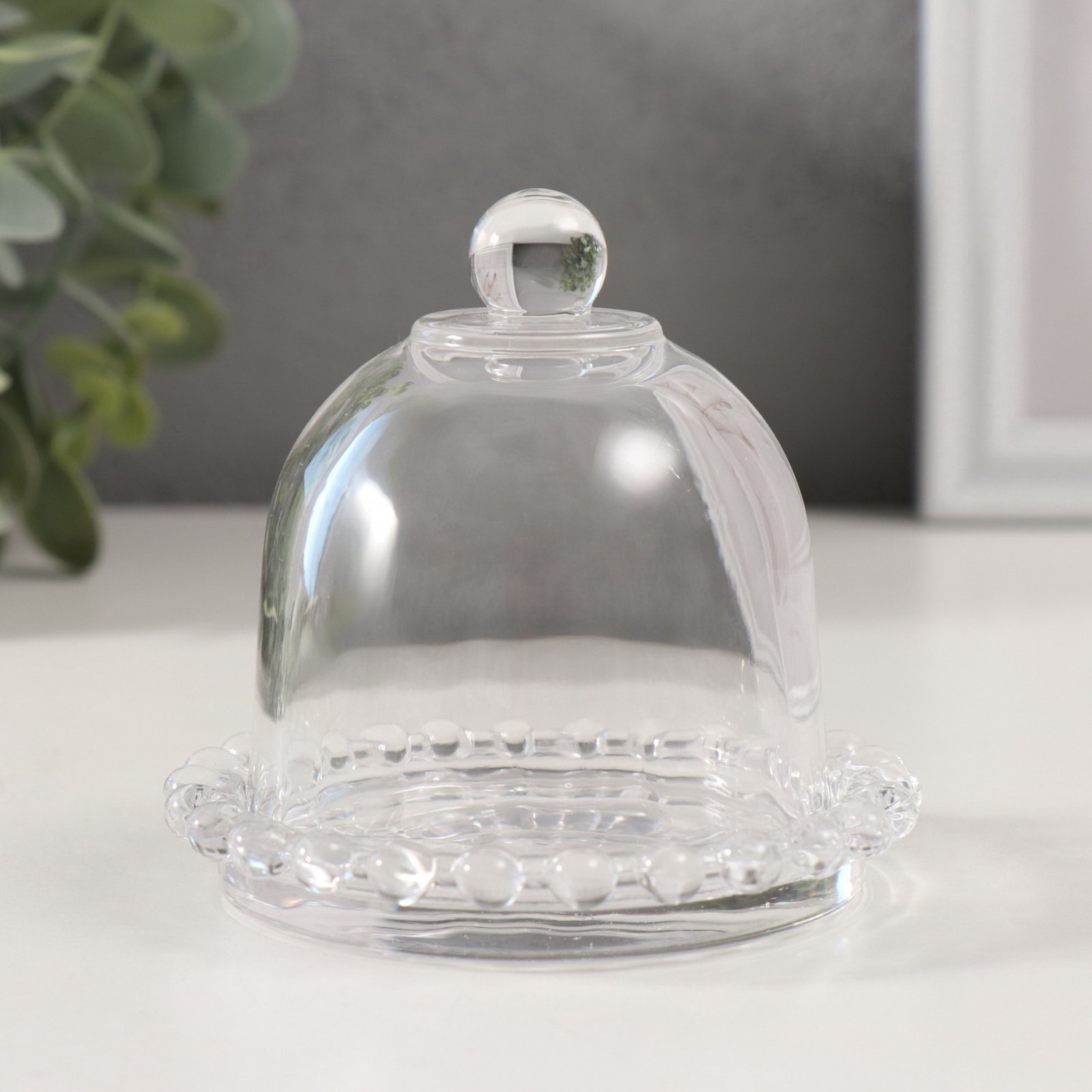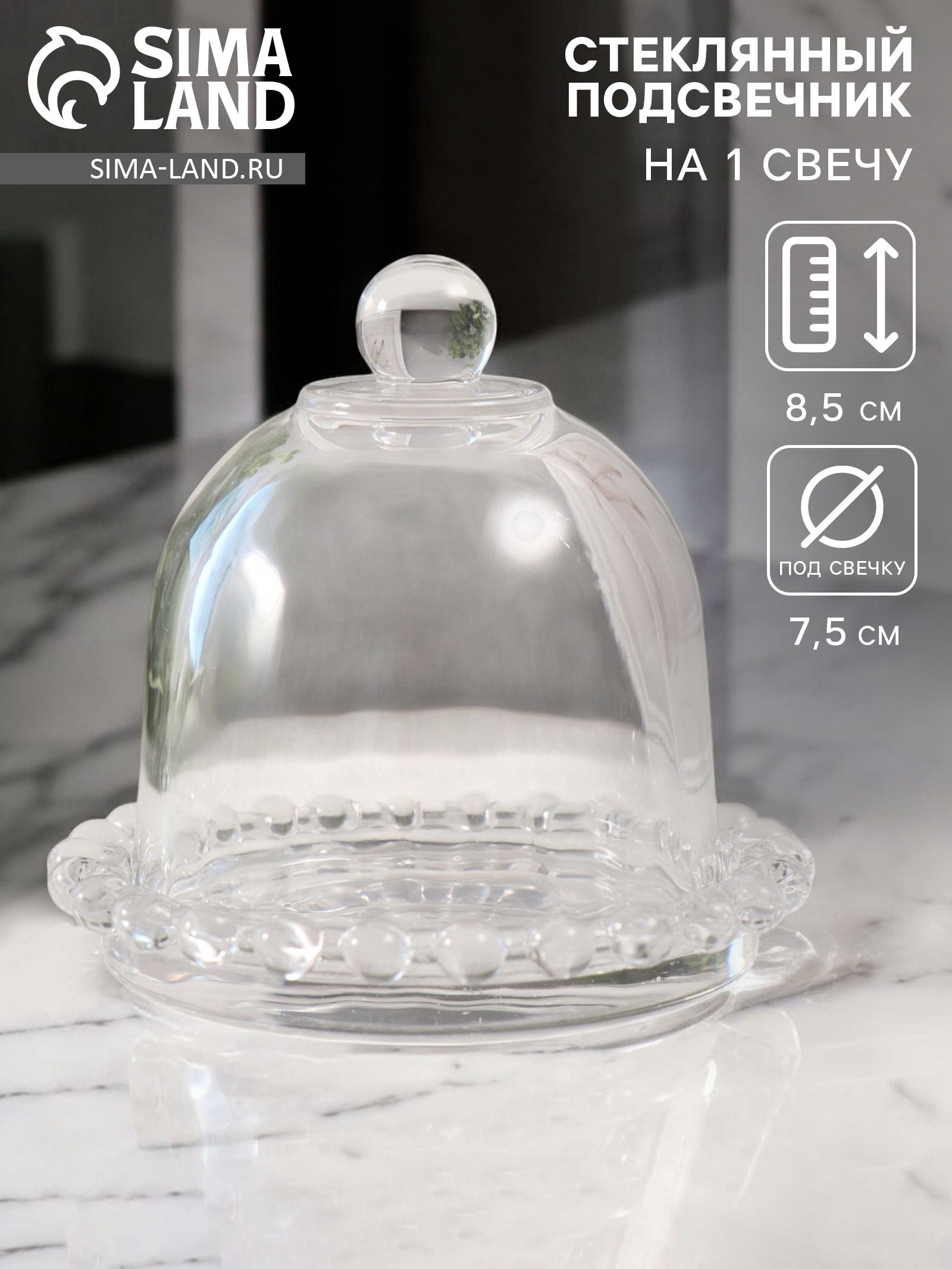 Стеклянный подсвечник на 1 свечу "Купол с капельками", прозрачный, 9.5x9.5x8.5 см, 9.5x9.5x8.5 см., Китай