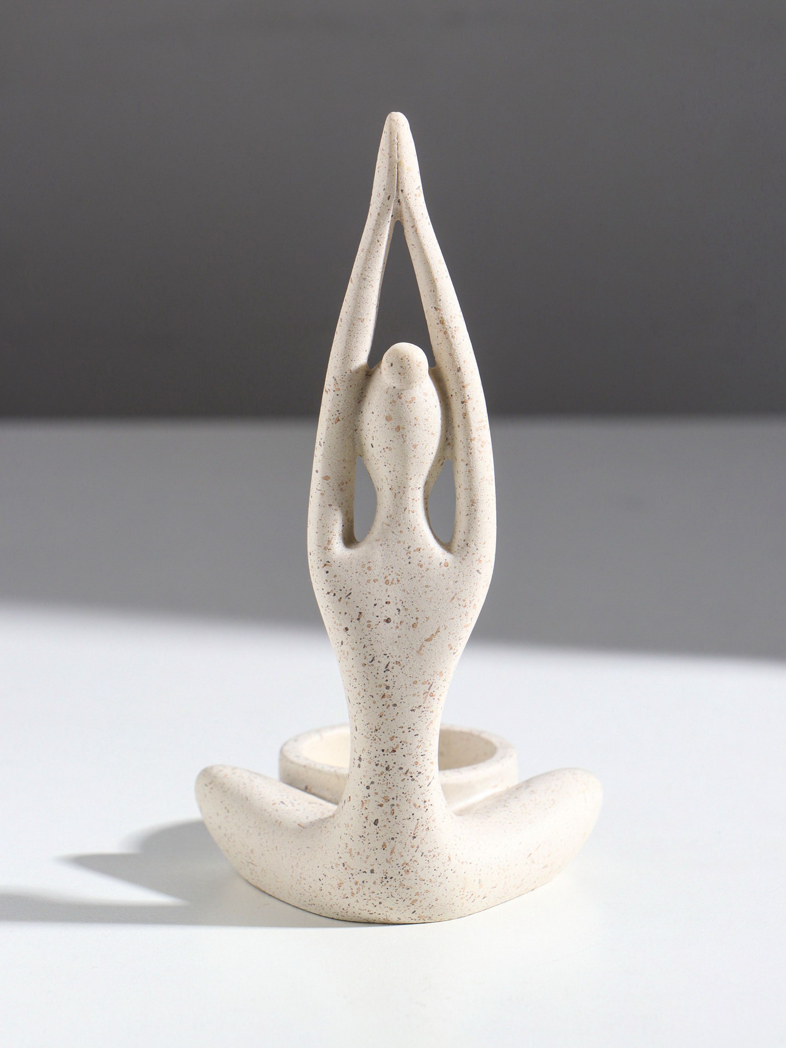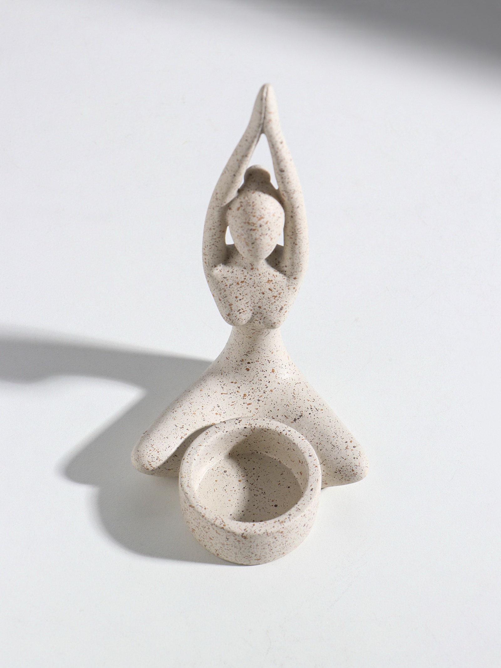Подсвечник на 1 свечу "Приветствие солнцу", полистоун, белый в крапинку, 8.7x8.7x16.5 см, Китай